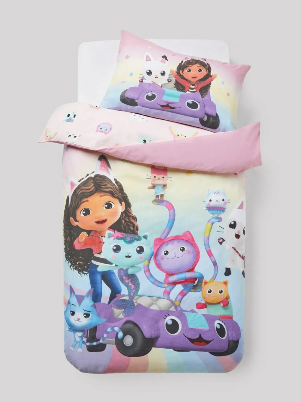 Next Multi Pink Gabby’s Dollhouse Rainbow Duvet Cover and Pillowcase Set^ Childrens Bedding