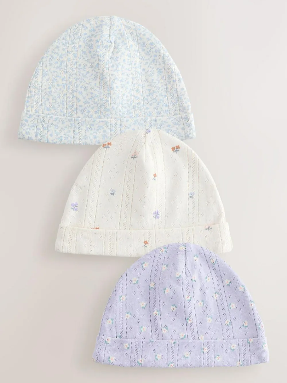Next Multi Pointelle Baby Beanies 3 Pack (0-18mths)^ Hats & Scratch Mitts|Newborn Accessories