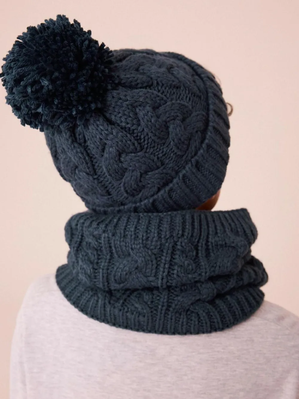 The perfect layer for their cold weather wardrobe, our stretch cotton cable knit pom hat is warm and stylish. Pom hat Cable knit Stretch cotton Outer 100% Acrylic. Lining 95% Cotton, 5% Elastane.