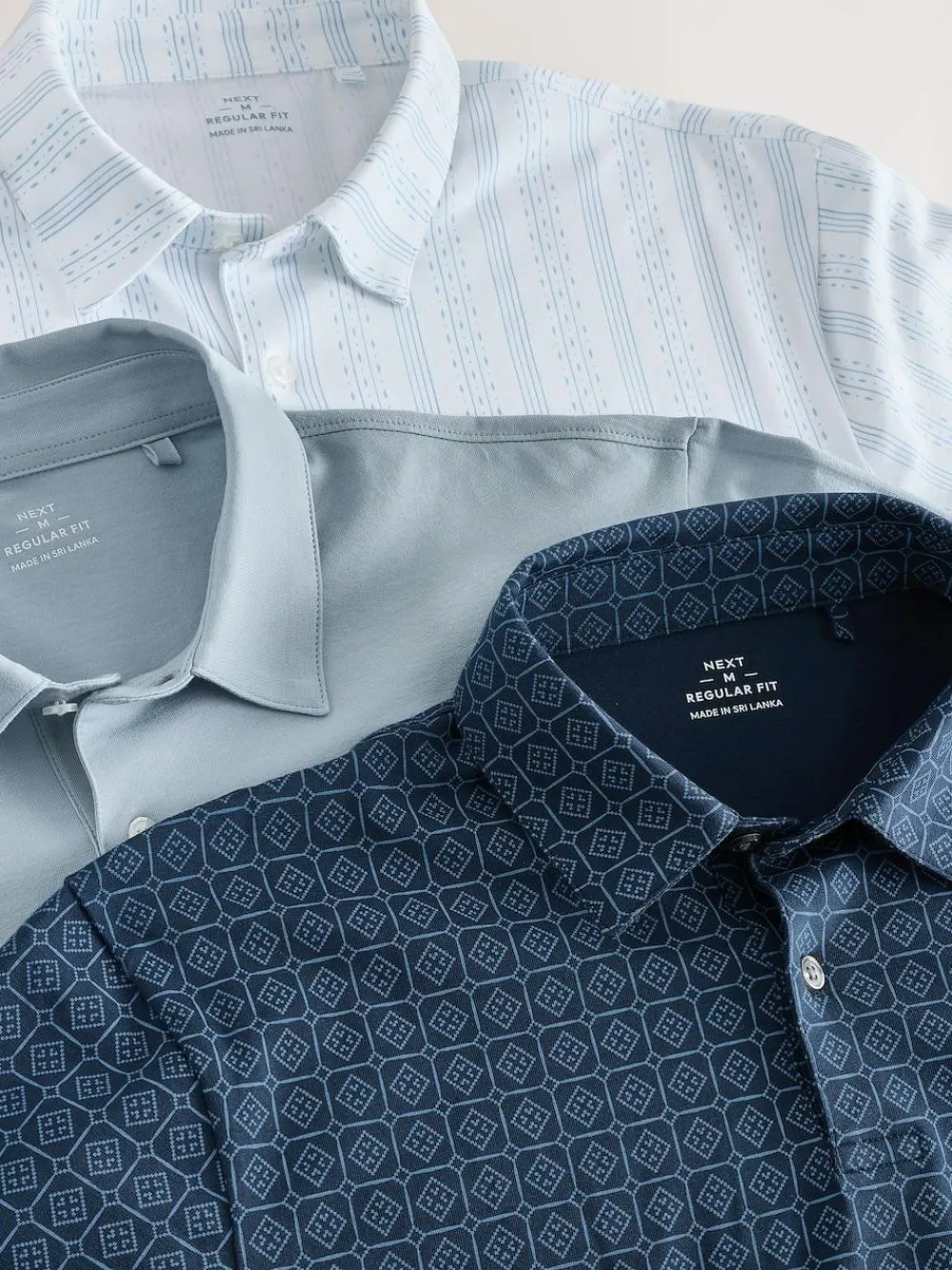 Next Navy Blue Geo Regular Fit Short Sleeve Jersey Polo Shirts 3 Pack^ Tops & T-Shirts