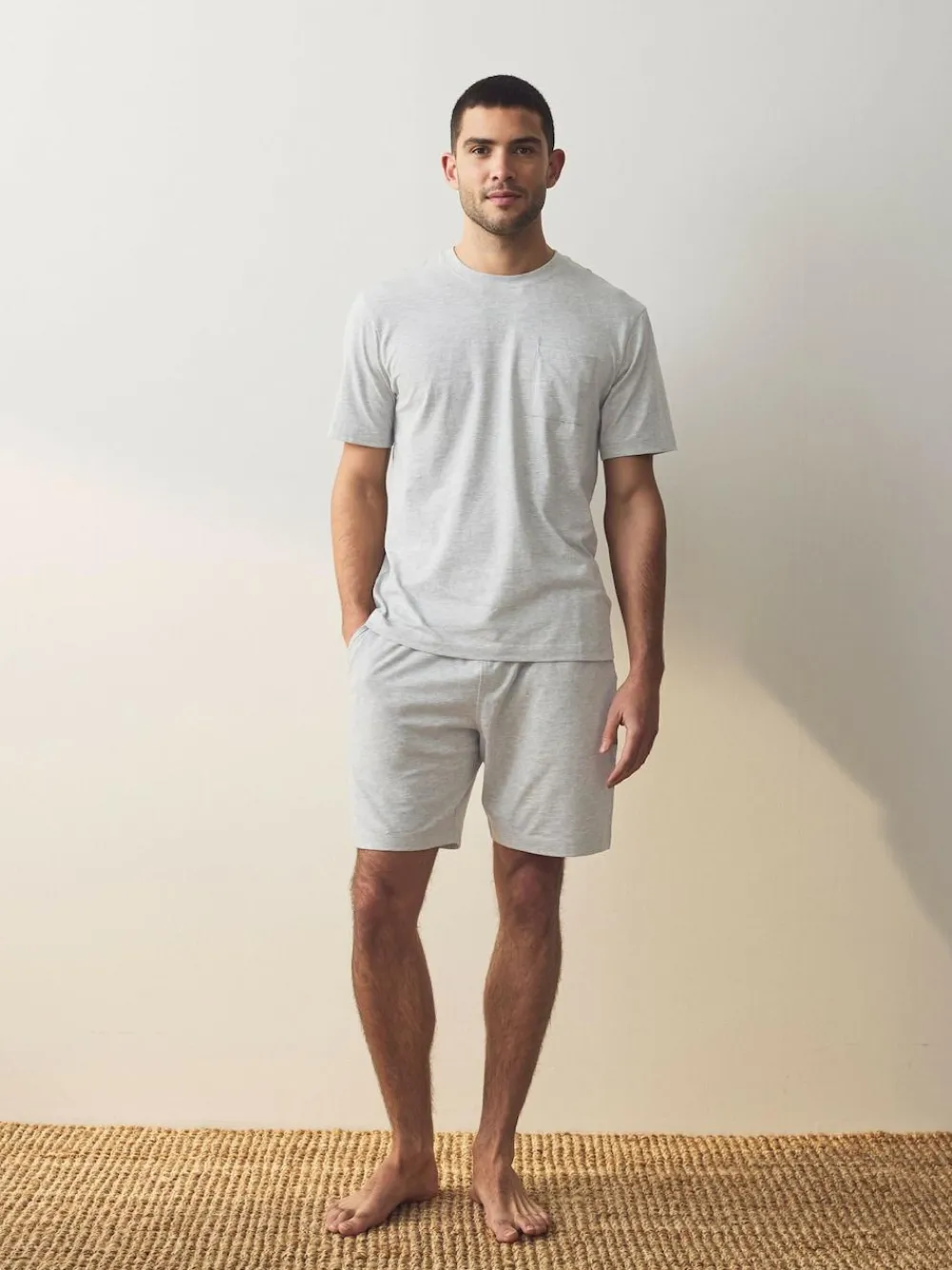 This 2-pack of navy blue and grey pyjamas is perfect for staying well stocked when it comes to sleepwear, featuring cotton-blend short sleeve t-shirts with crewneck collars, alongside matching shorts with an elasticated waistband and side pockets. 2-pack Cotton-blend fabric Short sleeve t-shirts Crewneck collar Elasticated waist shorts Side pockets Pyjama Top and Pyjama Bottom 100% Cotton. Pyjama Bottom and Pyjama Top 95% Cotton, 5% Viscose. Warning: Keep away from fire and flames.