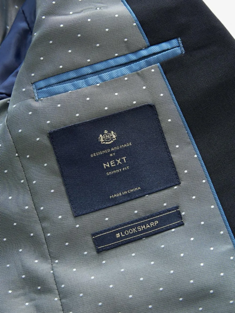 This sophisticated Suit Jacket is a polished choice for special occasions. Designed in a modern skinny fit, the jacket features a classic notch collar and a streamlined single button fastening at the front. The smooth fabric is complemented by tonal button details on the cuffs and a practical chest pocket. Skinny fit for a contemporary silhouette Single button fastening Notch collar Fully lined with internal pocket detailing Machine washable. Main 66% Polyester, 32% Viscose, 2% Elastane. Body Lining 100% Polyester.
