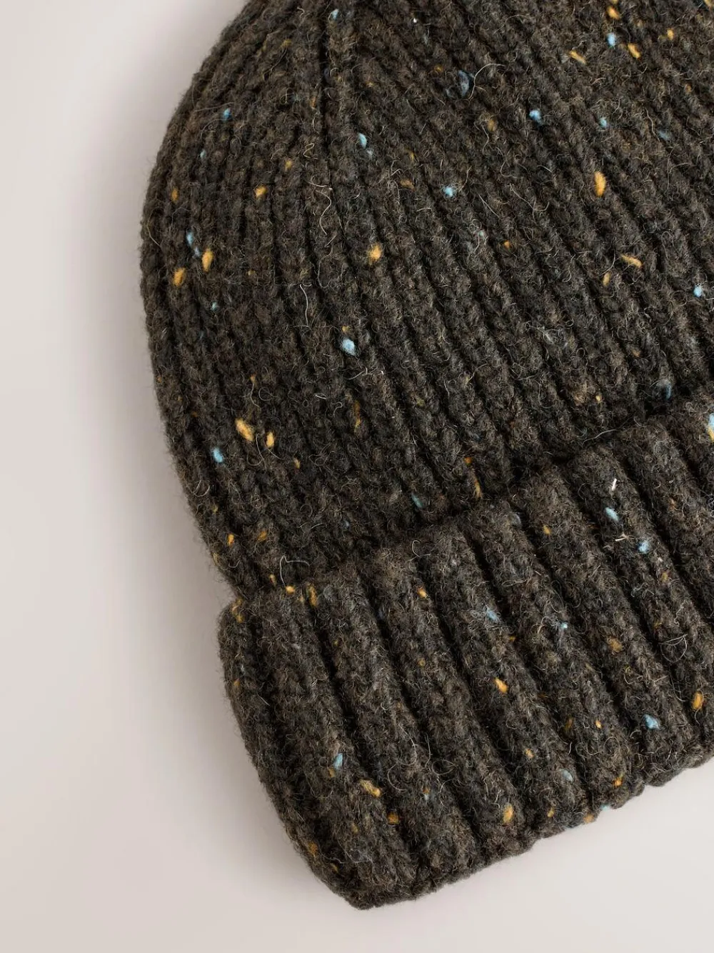 Finish your cold-weather look with this unique neppy twist beanie hat. Coming in black, the chunky knit and rib detail provide warmth and a comfortable fit, while the subtle multicoloured specks offer a stylish, textured finish. A versatile essential for adding personality to your everyday outfit. Neppy beanie Chunky knit Rib detail Unlined hat Hat Machine washable. 50% Wool, 50% Nylon.