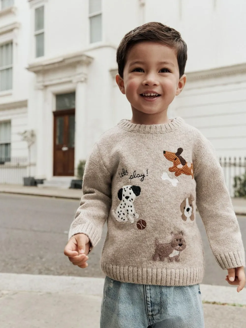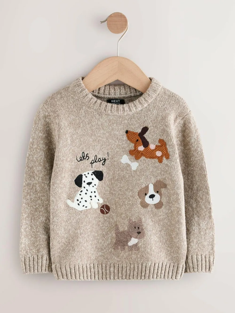 Next Neutral Dogs Knitted Crew Neck Jumper (3mths-7yrs)^BOY Knitwear|Knitwear