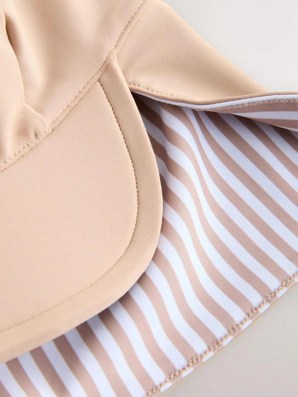 Keep them shaded from the sun with this Neutral Legionnaire swim hat, featuring a curved peak and a neck protector flap that’s ideal for the beach or sunny days out. Legionnaire shape Curved peak Neck flap Machine washable. 82% Recycled polyester, 18% Elastane.