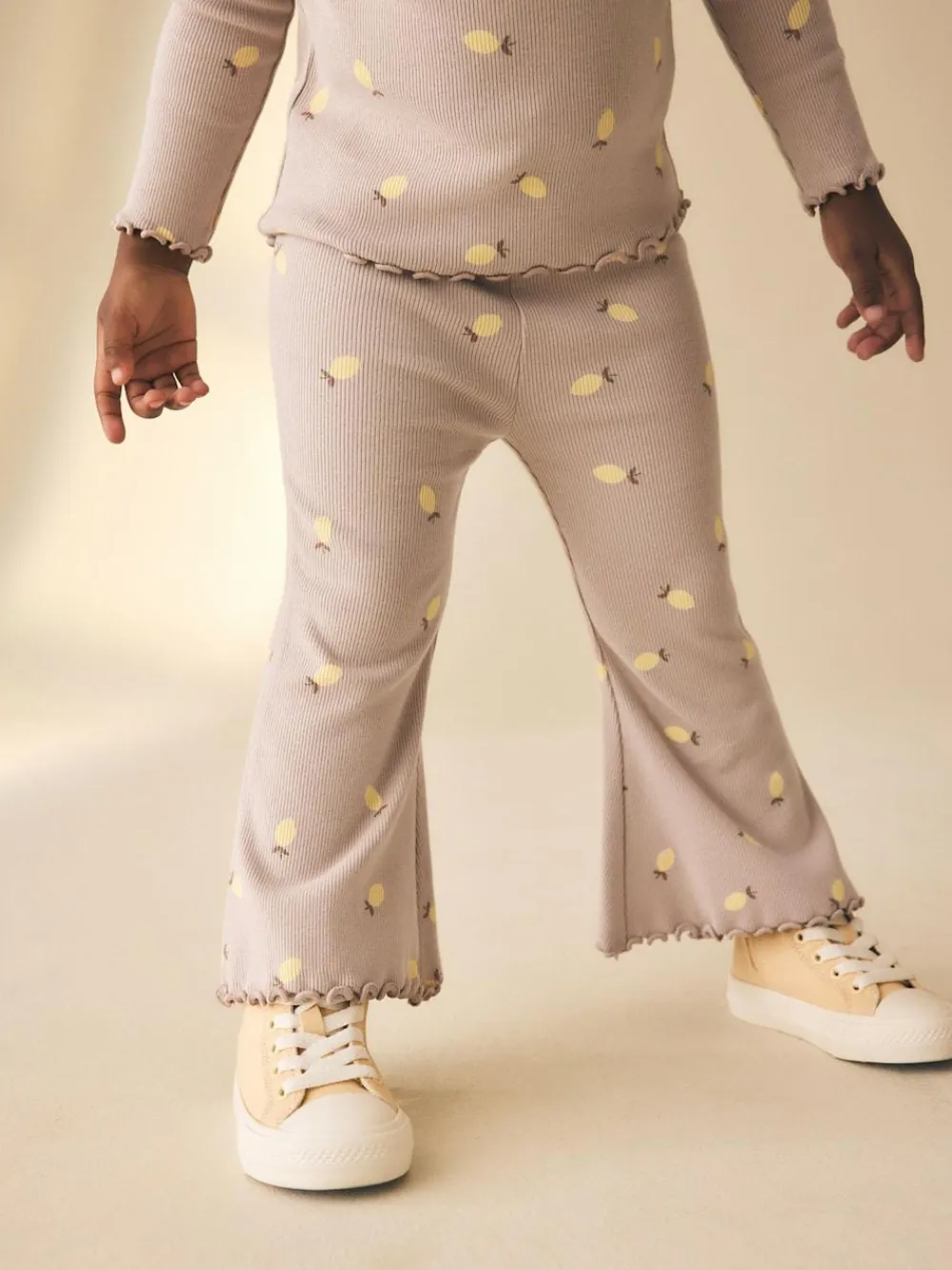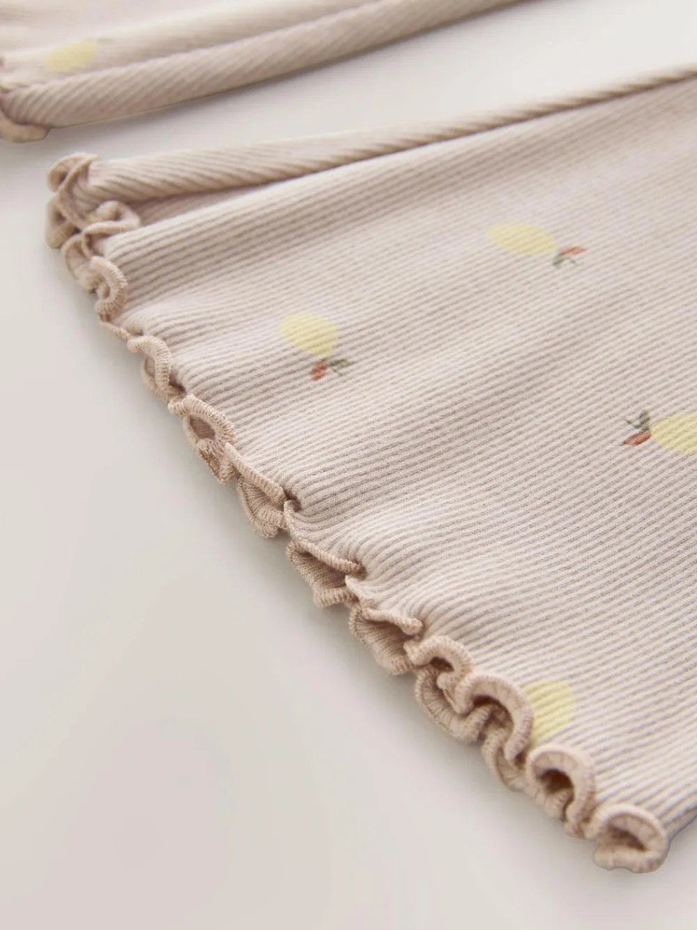 Next Neutral Lemon Print Rib Flare Leggings (3mths-7yrs)^ Pants & Leggings|Pants & Leggings