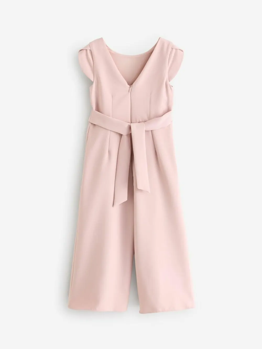 This stylish pink jumpsuit is perfect for special occasions, from weddings to birthdays, Eid or a Christening, featuring a tie fastening to the back with an oversized bow, a v-shaped back and pleated detailing, finished with a zip fastening. Short sleeves V-shaped back Oversized bow fastening Zip fastening Main 90% Polyester, 10% Elastane. Lining 100% Polyester.