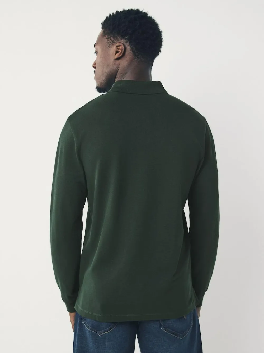 Unlock preppy and put-together style with our long-sleeve pique polo shirt in olive green. Designed with a classic buttoned placket in a regular, smart fit, it also features elastane for added comfort, stretch, and shape retention, as well as a breathable pique fabric. This piece is a core wardrobe essential. Regular fit Breathable pique fabric Stretchy and shape retentive Long sleeves Core wardrobe staple 95% Cotton, 5% Elastane.