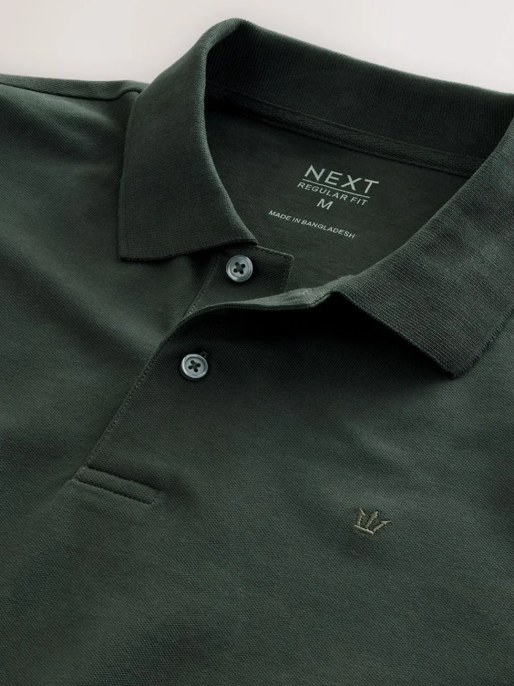 Next Olive Green Regular Fit Long Sleeve Pique Polo Shirt^ Tops & T-Shirts