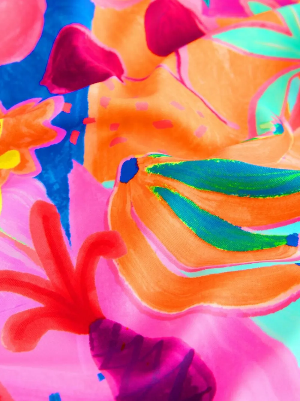 This all-in-one orange tropical swimsuit provides extra coverage to help protect her from the sun, featuring a zip fastening to the front, long sleeves and a high collar. It is constructed with a soft, stretchy fabric with a UPF rating of 50+. All-in-one Sunsafe Zip fastening Long sleeves High collar Machine washable. Main 82% Recycled polyester, 18% Elastane. Lining 92% Recycled polyester, 8% Elastane. This fabric will provide protection against solar ultraviolet radiation. It has been independently tested and given a UPF rating of 50+ which blocks more than 97.5% of UV rays. Important Advice: • Sun exposure causes skin damage • Only covered areas are protected • Always use a high protection factor sunscreen on any exposed areas of skin • The protection offered by this fabric may be reduced with use or if stretched or wet • Always rinse in fresh water after each use • Young children should be kept in the shade between 11 and 3 • Don’t forget your hat and sunglasses. • Fabric provides UVA +UVB protection from the sun.