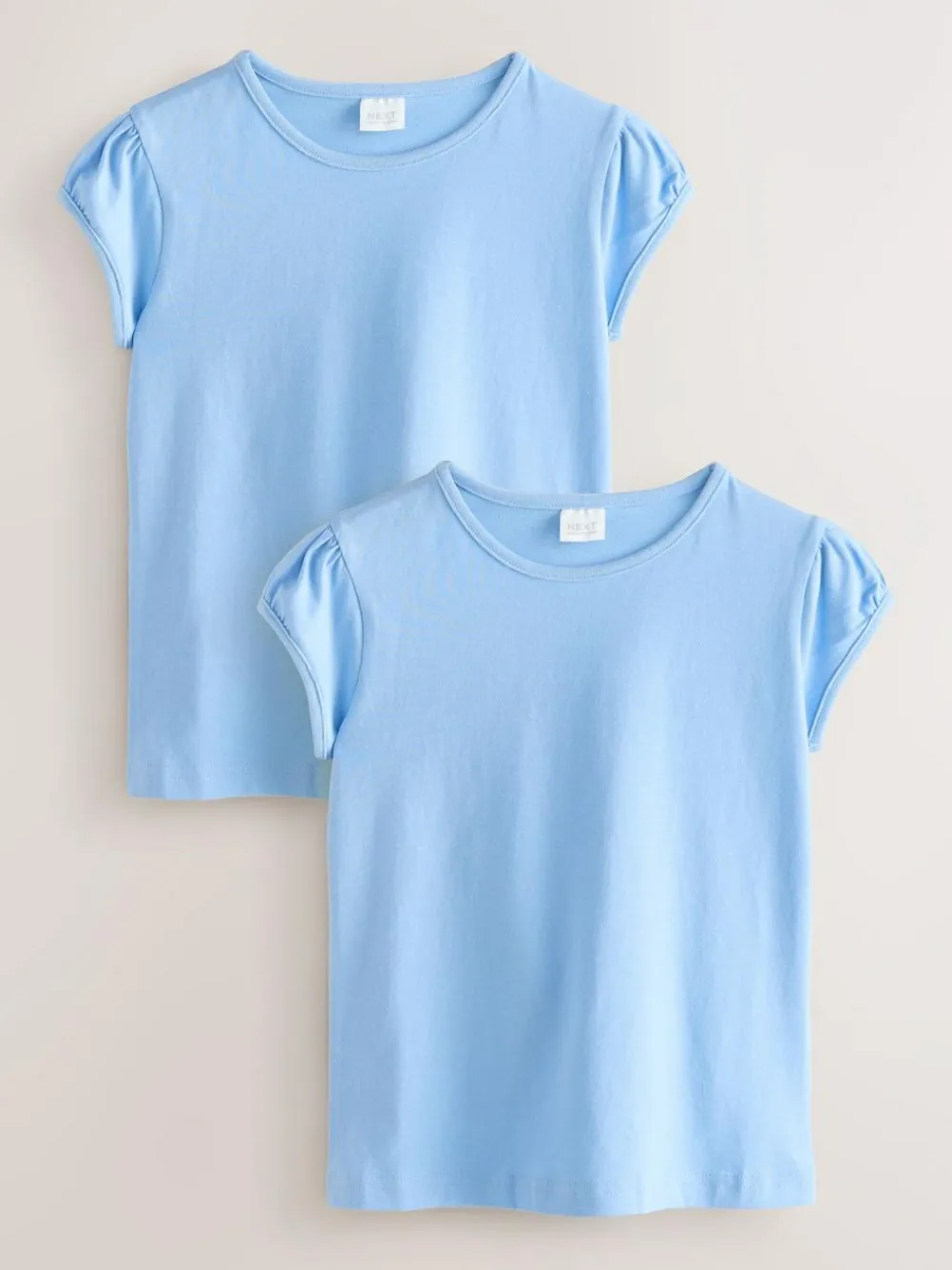 This handy 2-pack of soft cotton t-shirts is perfect as a base layer for school or everyday wear, featuring short puff sleeves, a round collar and a regular fit.2 Pack Short puff sleeves Round neck Regular fit 100% Cotton Machine washable. 2 x T-shirt 100% Cotton.