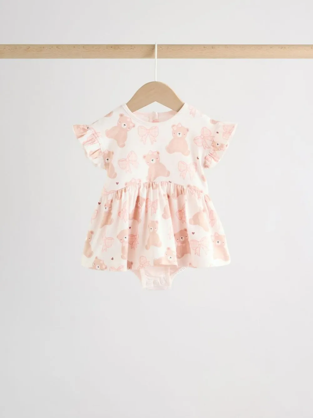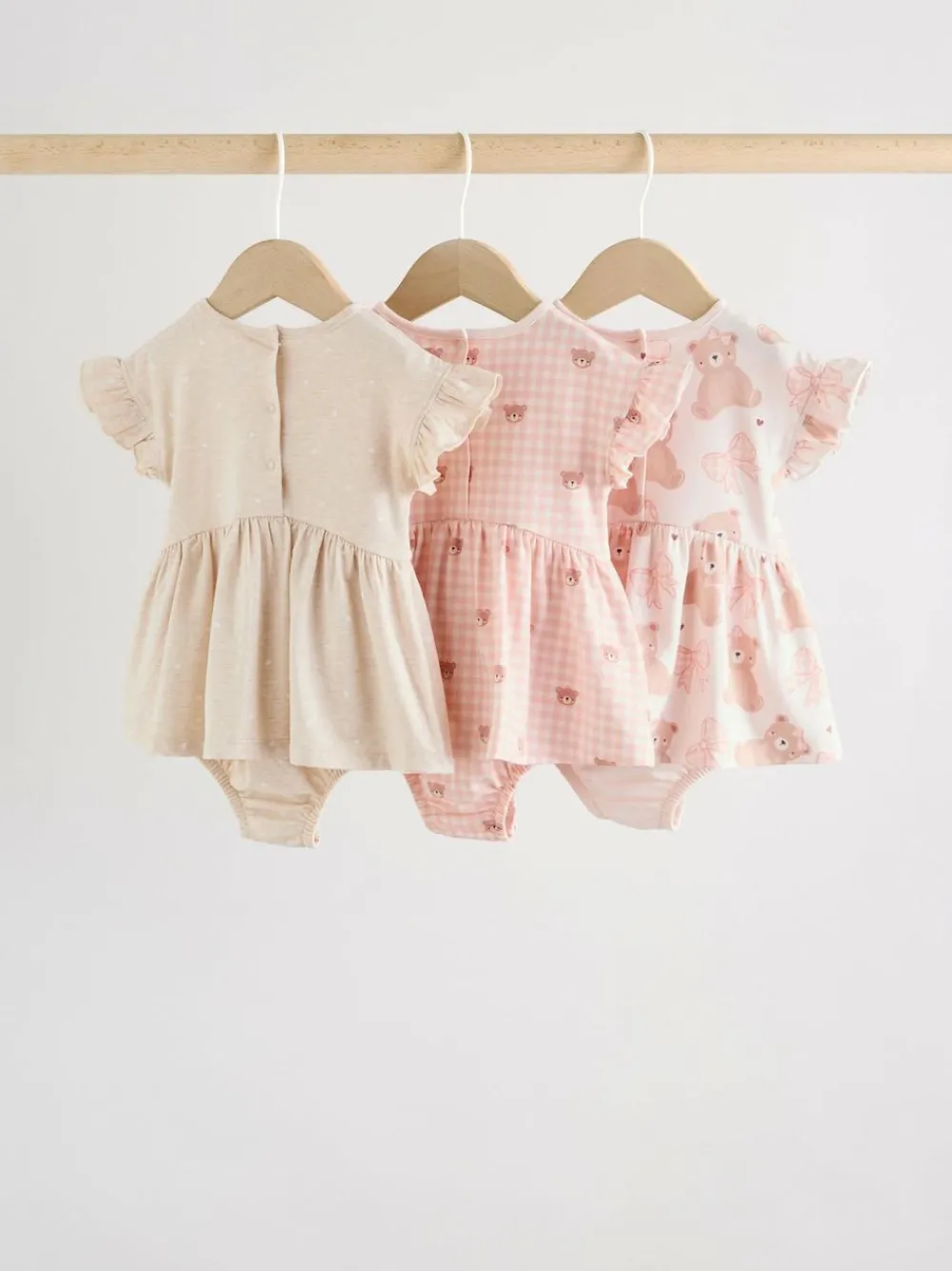 Next Pink Bear Embroidered Jersey Baby Rompers 3 Pack^ Sets & Coords|Rompers & Overalls