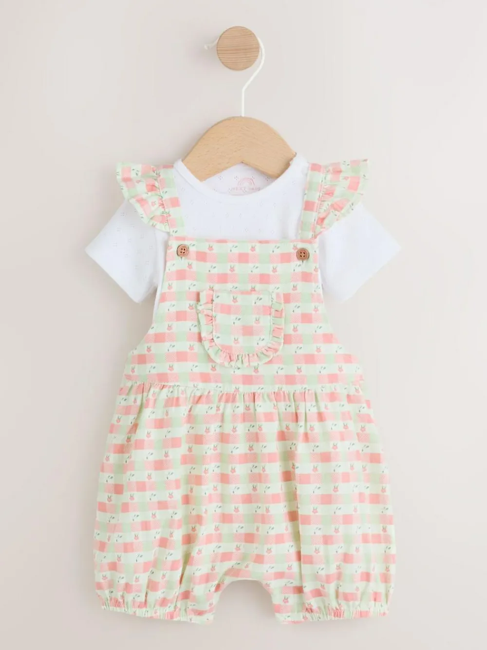 Next Pink Check Baby Dungarees and Bodysuits Set 2 Piece (0mths-2yrs)^ Rompers & Overalls