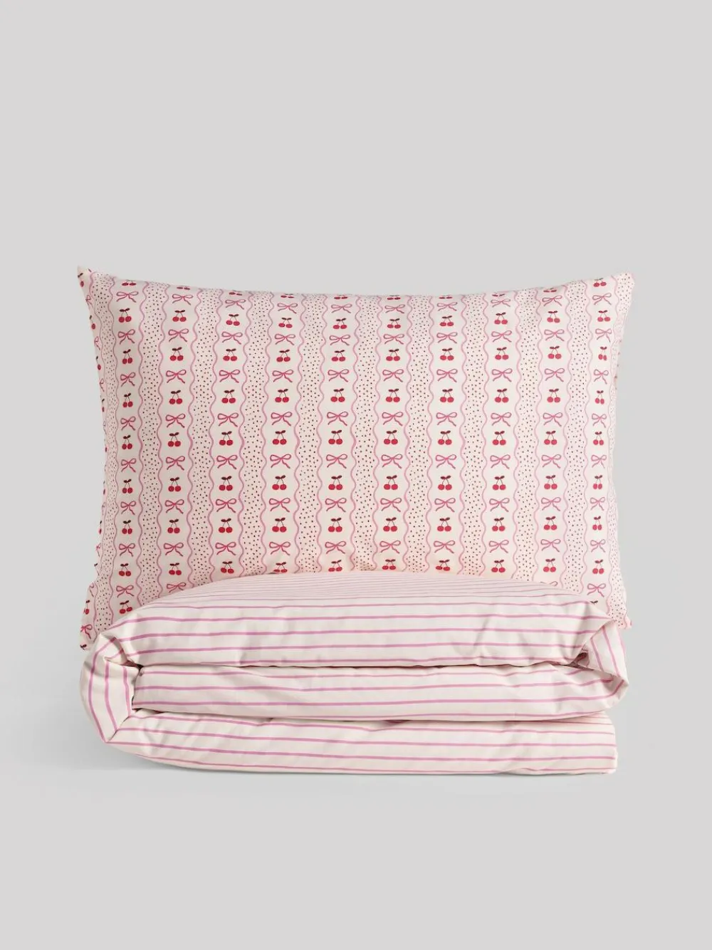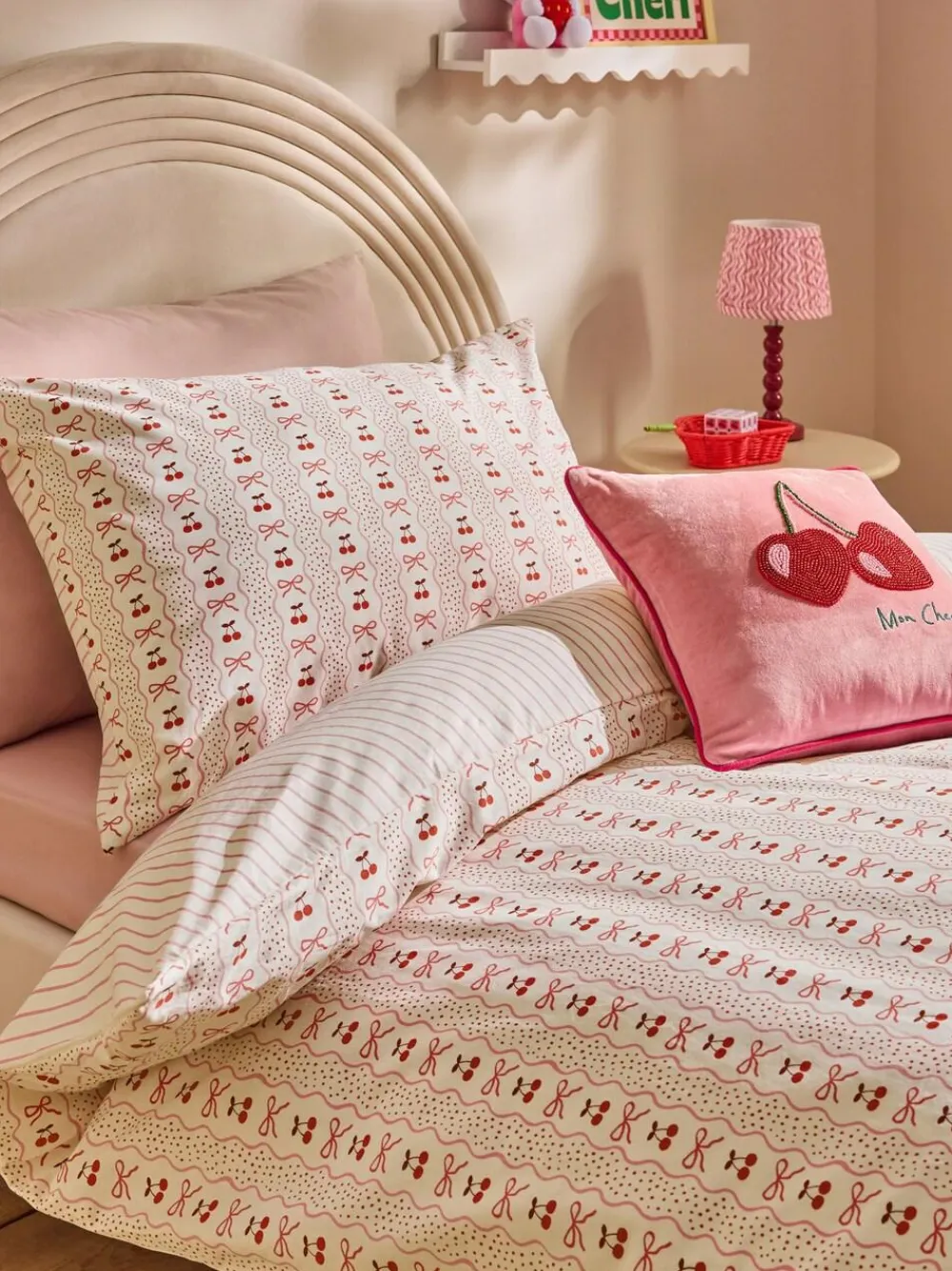 Next Pink Cherry Bow Duvet Cover and Pillowcase Set