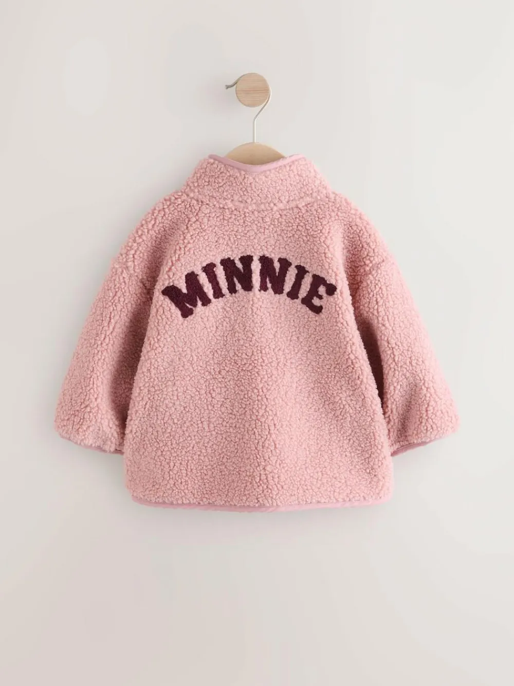 This pink preppy-look fleece is perfect for your little Disney fan, made from a war borg fabric with a Minnie Mouse chest and back boucle design, a zip-up neck with a tall collar and side pockets. Regular fit Borg fleece fabric Zip-up neck Boucle Minnie Mouse chest and back graphics Main 100% Recycled polyester. Trim 100% Polyester.