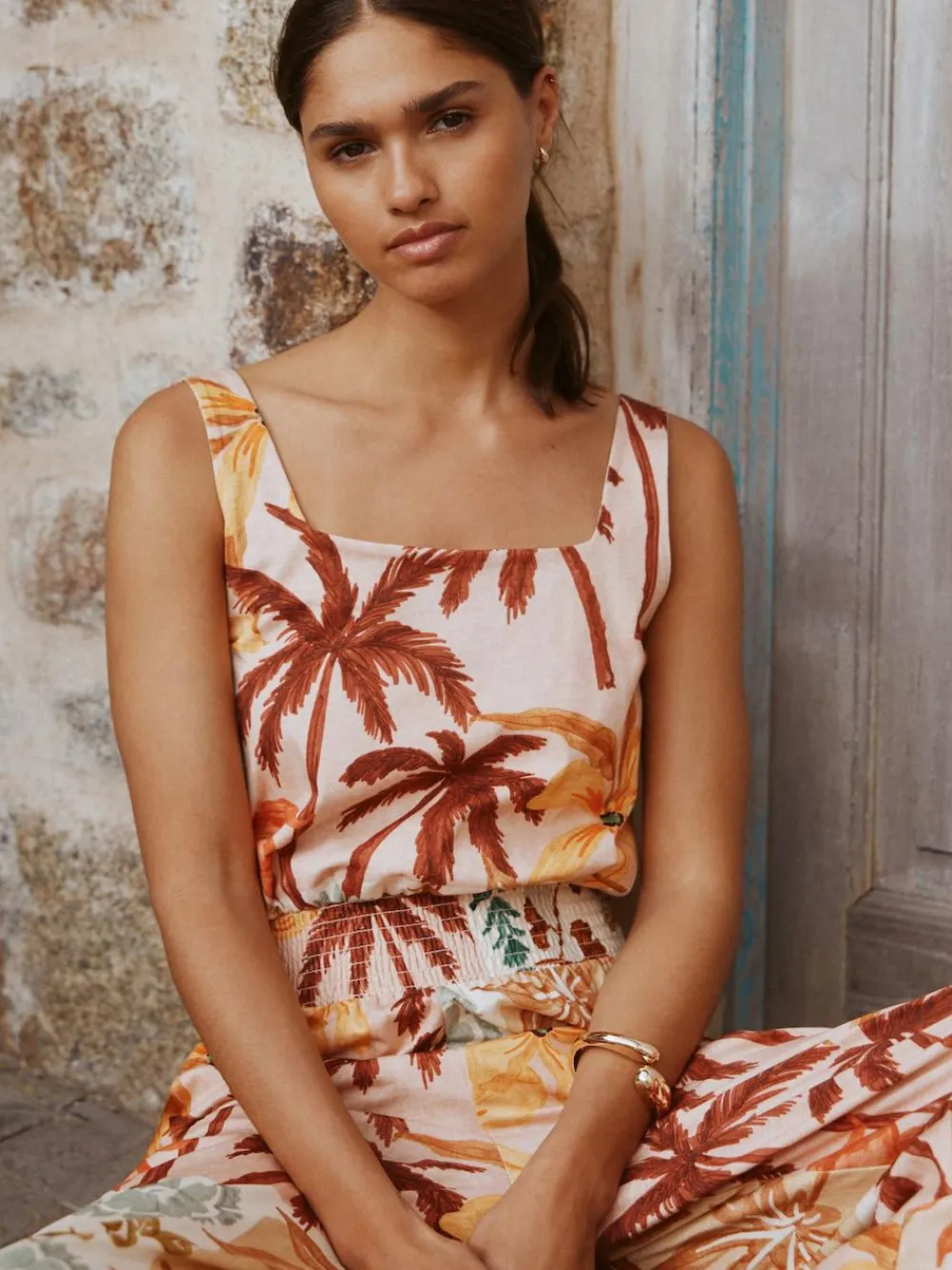 Embrace sunshine style with this effortless jersey jumpsuit. The vibrant floral and palm print is perfect for holidays, while the soft, flowing fabric ensures supreme comfort. Featuring a flattering square neck and a cinched waist detail leading to a relaxed wide-leg silhouette, it’s your go-to for chic weekends and travel. Soft jersey fabric Vibrant tropical print Flattering square neckline Cinched waisted detail Wide leg fit Regular to fit inside leg 29″ / 74cm. Tall to fit inside leg 35″ / 89cm. Machine washable. 100% Cotton. Items with the curve logo are available in sizes 18 and above., Our tall collection is designed to fit women 5’10” and above. This has been proportionally increased through the body, leg and sleeve to achieve the perfect fit. Available in sizes 8-20.