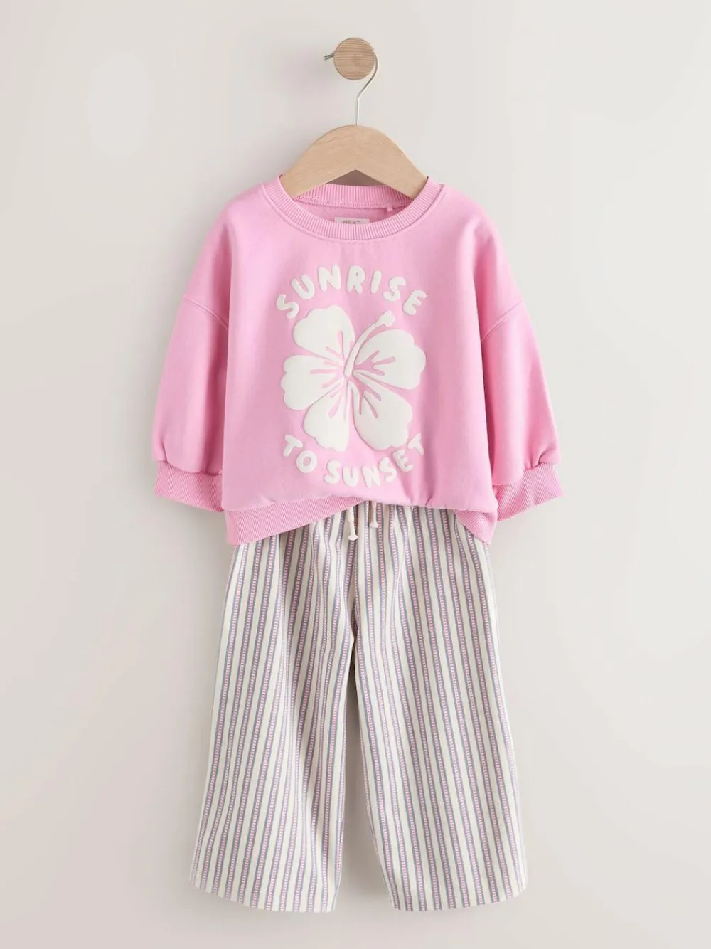 Next Pink Flower Sweatshirt & Wide Leg Trousers Set (3mths-7yrs)^ Sets & Coords