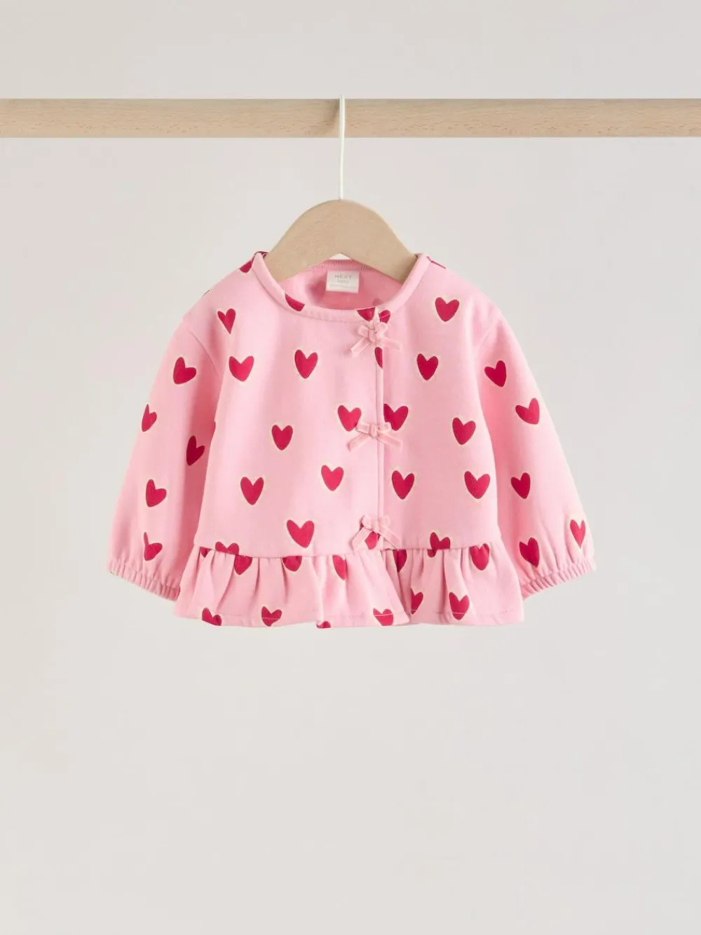 This adorable Pink Heart Top & Leggings Set is a cosy and cute 2 piece essential for your little one’s adventures. Made from cosy cotton, the set features a playful heart print design, a pretty frill peplum, and a charming bow popper detail, all made with no harmful chemicals or dyes. Cosy cotton fabric Heart print design Pretty frill peplum Bow popper detail No harmful chemicals or dyes / Nickel free poppers 2 piece set Sweater and Jogger 90% Cotton, 10% Recycled polyester. Warning: Keep away from fire and flames.