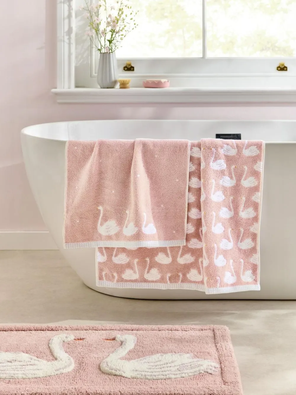 Next Pink Swan 100% Cotton Towel^ Towels & Bathmats