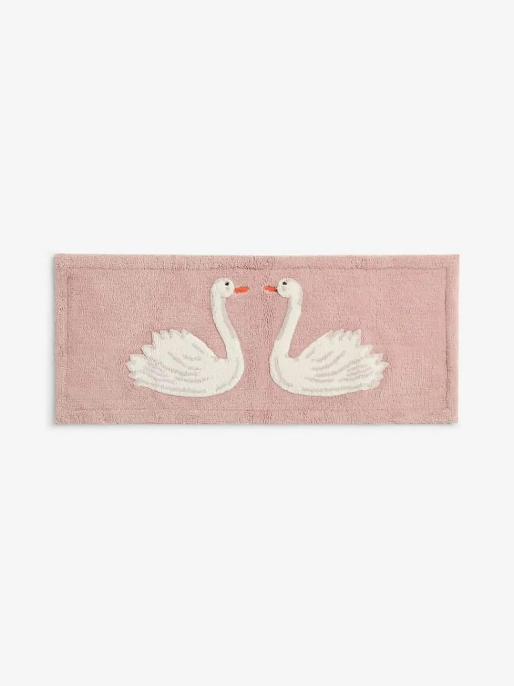 Next Pink Swan Print 100% Cotton Runner Bath Mat^ Towels & Bathmats