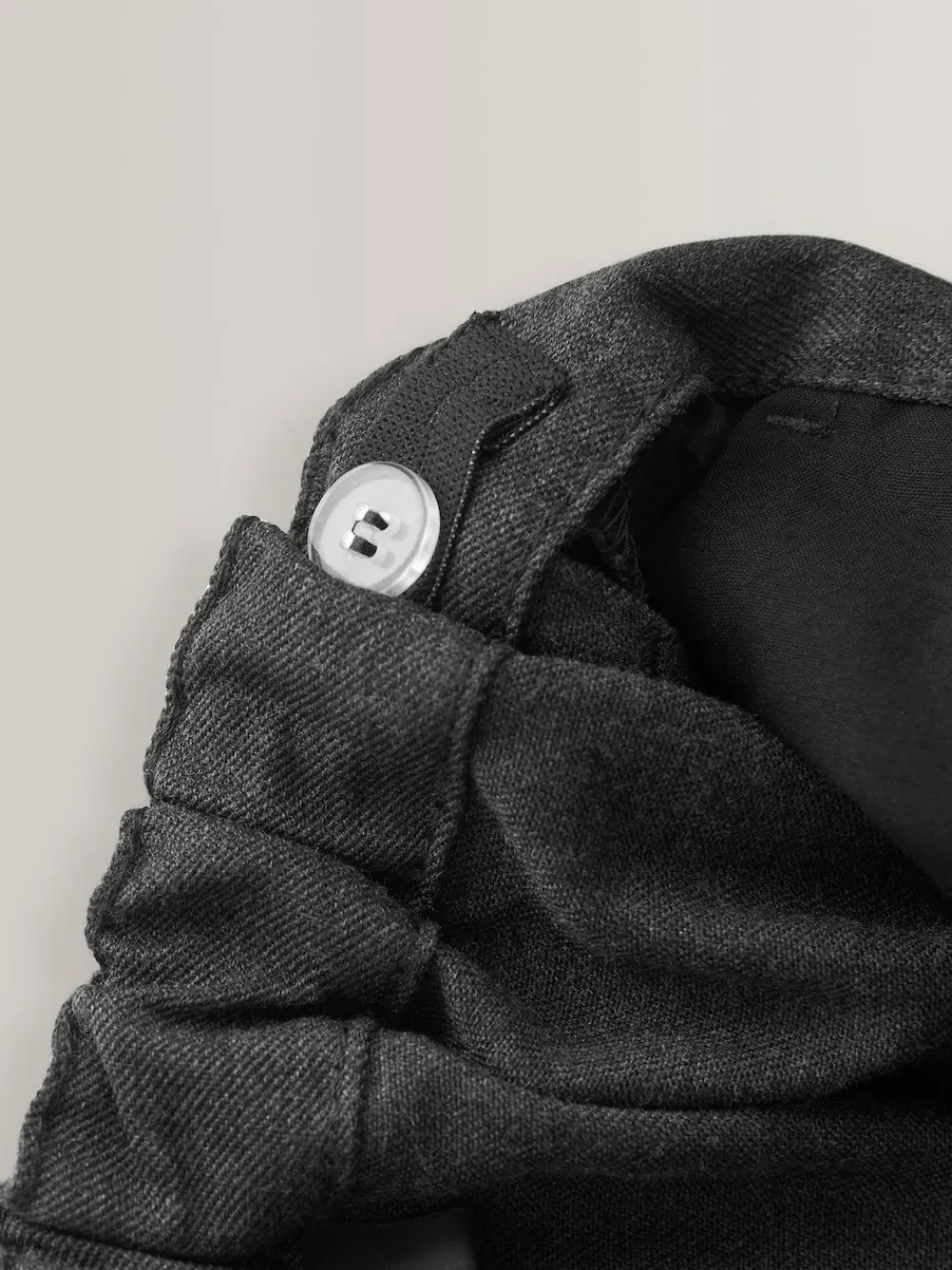 These grey, plus waisted trousers are designed with an adjustable waistband for the perfect fit and a smart permanent centre-leg crease. With a hook and bar fastening and a stain repellent finish. Key features Easy Iron Fabric – Handy easy-iron finish Teflon® Technology – a treatment that repels water and water-based stains for easy cleaning and quick drying Machine washable Adjustable waist Permanent centre-leg crease Plus fit: +2 inches for a wider fit on the waist Machine washable. 65% Recycled polyester, 35% LENZING™ ECOVERO™ Viscose. This product is made with teflon. Teflon® is a registered trademark of DuPont., Plus fit styles are more generous through the waist and hips for a comfortable fit.