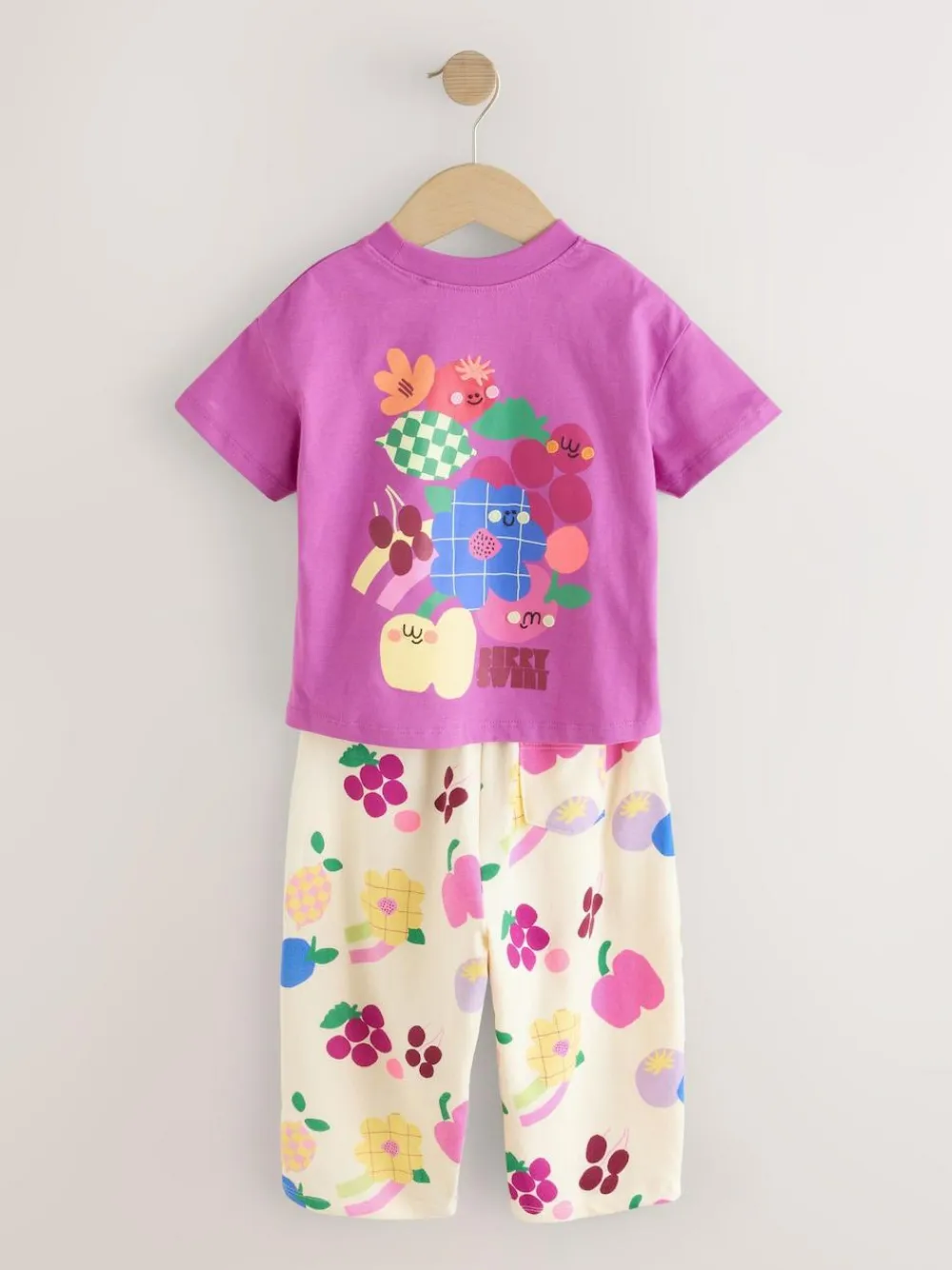 Next Purple Short Sleeve T-Shirt and Joggers Barrel Set (3mths-7yrs)^ Baby Girls|Tops