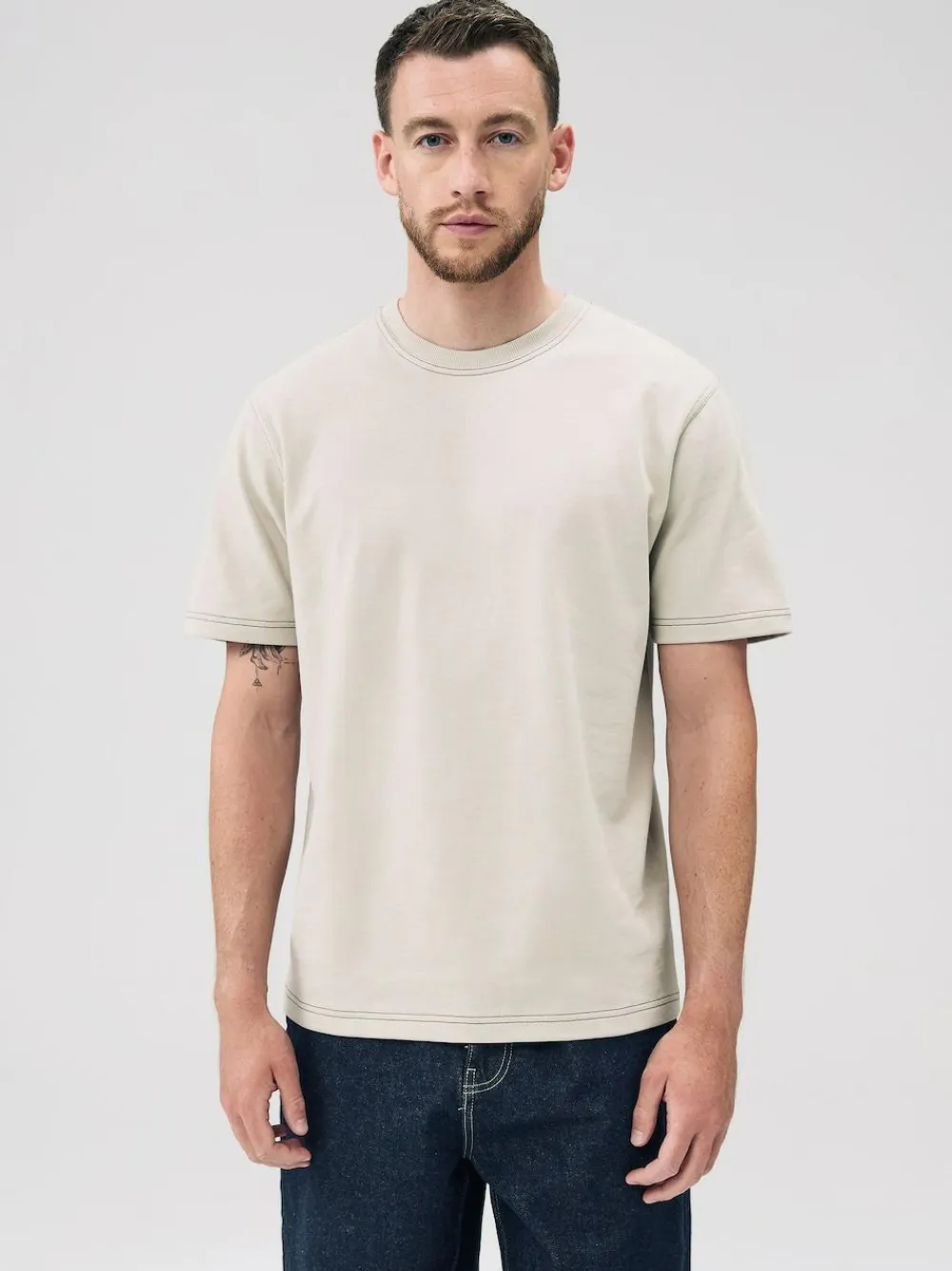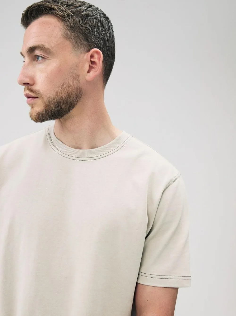 Next Putty Contrast Stitch Regular Fit Heavyweight T-Shirt^ Tops & T-Shirts