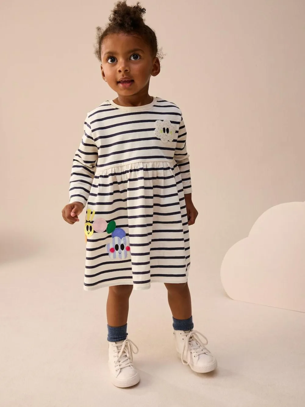 A fun choice for her wardrobe, this long sleeve dress is designed for enchanting style. The adorable details create a delightful look, making it a perfect piece for any occasion. 100% cotton Round neck Long sleeves Machine washable. 100% Cotton.