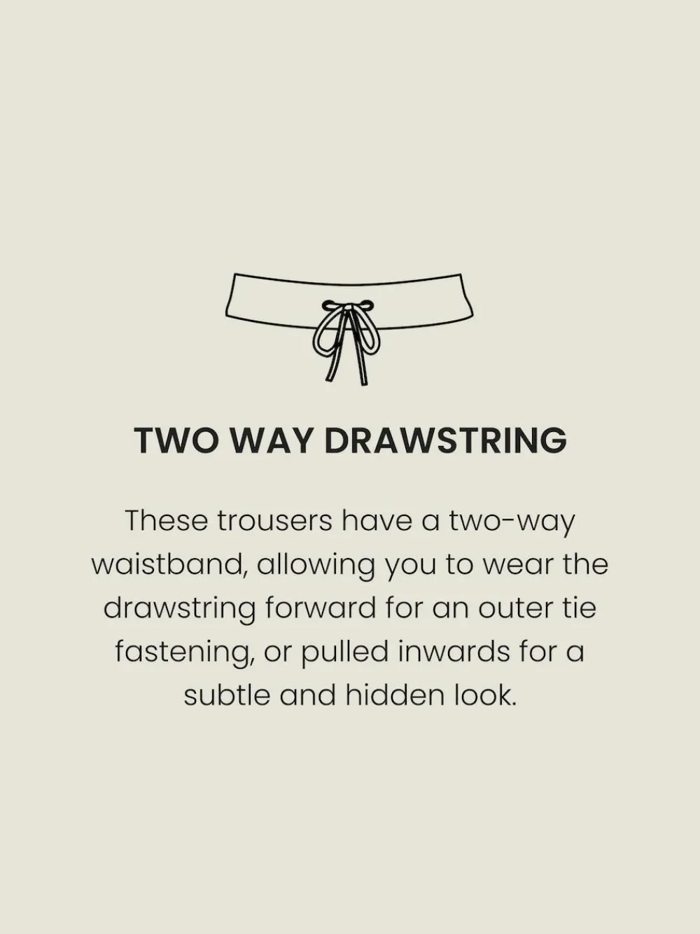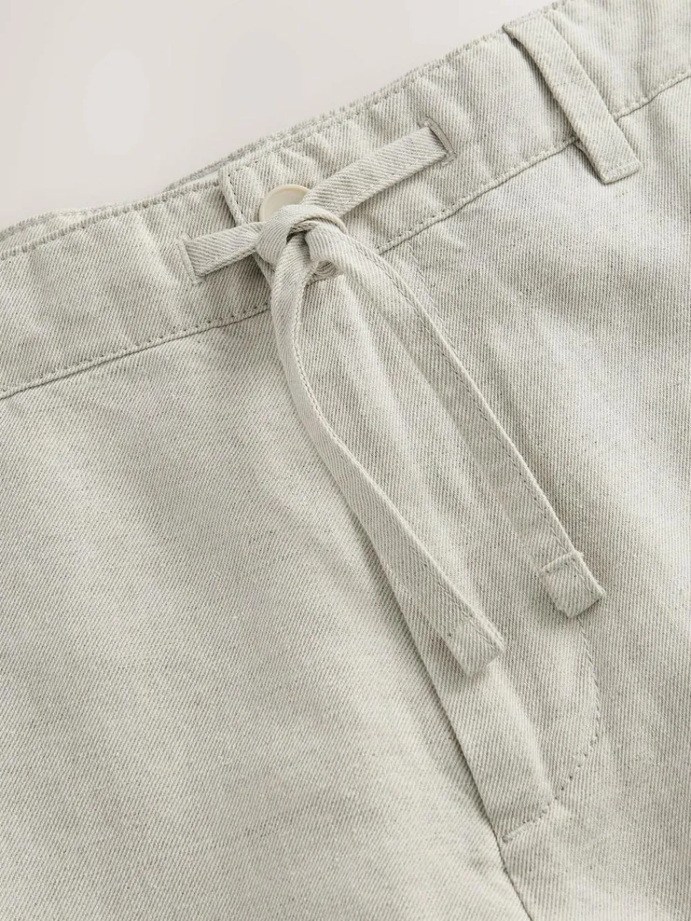 In a cotton and linen twill fabric, these breathable chino trousers are a smart-casual option for your warm weather wardrobe, featuring a button and zip fastening with an adjustable drawstring waistband. These trousers have a two-way elasticated waistband, allowing you to wear the drawstring forward for an outer tie fastening, or pulled inwards for a subtle and hidden look. Regular fit Cotton and linen blend Adjustable waistband Side pockets Rear pockets Machine washable. 50% Linen, 50% Cotton.
