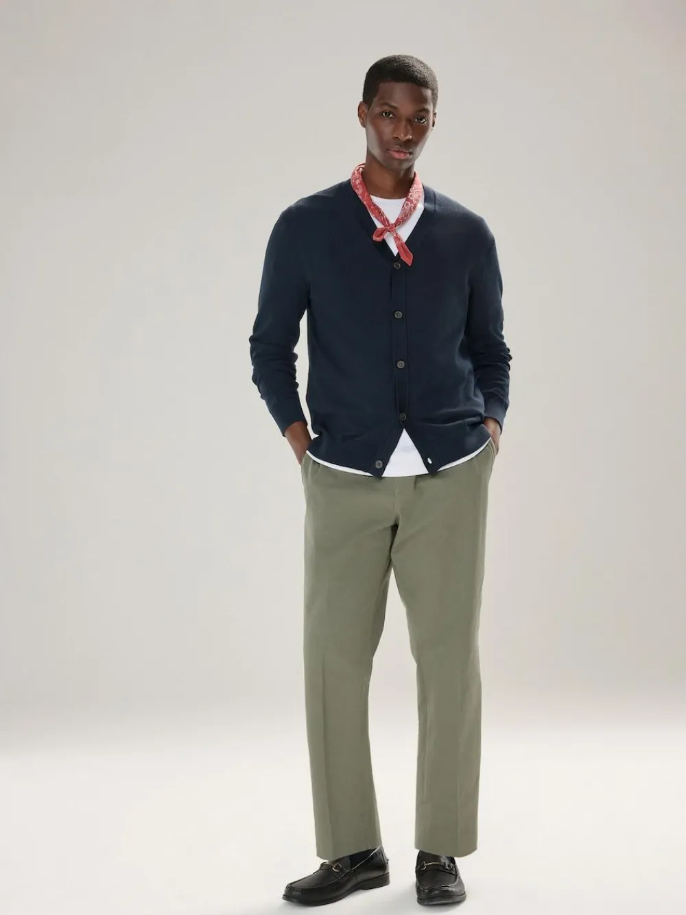 Refine your layering with this classic navy-blue cardigan. Crafted from a soft cotton blend, its versatile regular fit and V-neck design make it an essential for year-round wear. A true wardrobe staple for a polished yet comfortable look. V-neck Button-up fastening Ribbed cuffs and hem Soft-touch feel Machine washable. 51% Cotton, 34% LENZING™ ECOVERO™ Viscose, 15% Nylon.