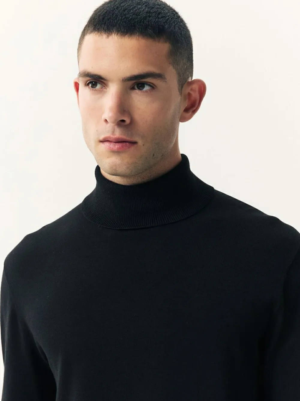 This essential Regular-Fit Roll Neck Jumper is perfect for smart, comfortable layering. Crafted from a soft cotton-rich fabric, it provides natural breathability and a warm feel. The classic roll neck offers extra warmth and a refined look, while the regular fit ensures a comfortable silhouette, ideal for wearing under jackets or blazers. Available in standard sizes. Soft cotton-rich fabric Classic roll neck for warmth Comfortable regular fit Long-sleeve design Available in standard sizes Best for smart, cold-weather layering Machine washable. 51% Cotton, 34% LENZING™ ECOVERO™ Viscose, 15% Nylon.