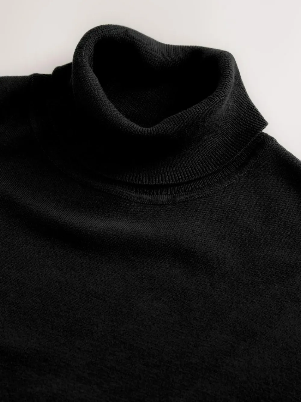 Next Regular Fit Cotton Rich Roll Neck Jumper Black