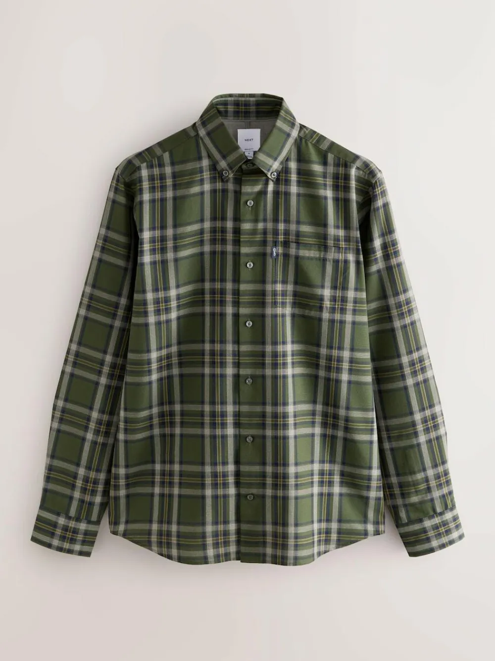 Next Regular Fit Easy Iron Button Down Oxford Shirt Green Blackwatch