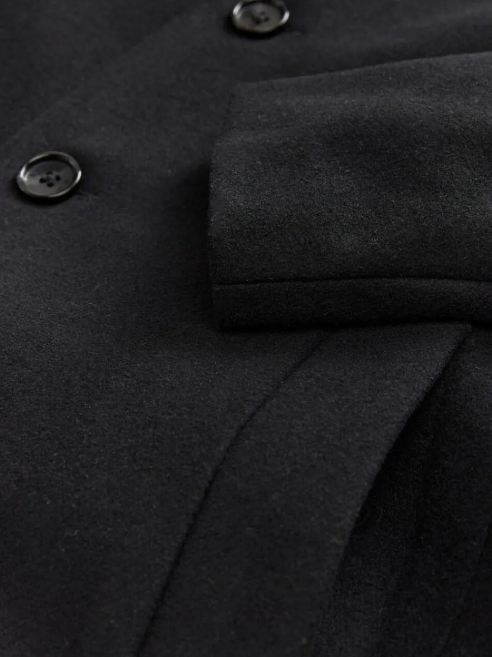 In a timeless design, this smart black Epsom coat features a warm wool blend fabric that’s ideal for autumn and winter dressing, in a tastefully understated single breasted button fastening and a lapel collar, finished with side and internal pockets. Regular fit Longline shape Single breasted Wool-blend fabric Button-up fastening Lapel collar Side and internal pockets Main 36% Recycled polyester, 34% Wool, 15% Acrylic, 8% Nylon, 5% Viscose, 2% Cotton. Body Lining 100% Recycled polyester. Sleeve Lining 100% Polyester.