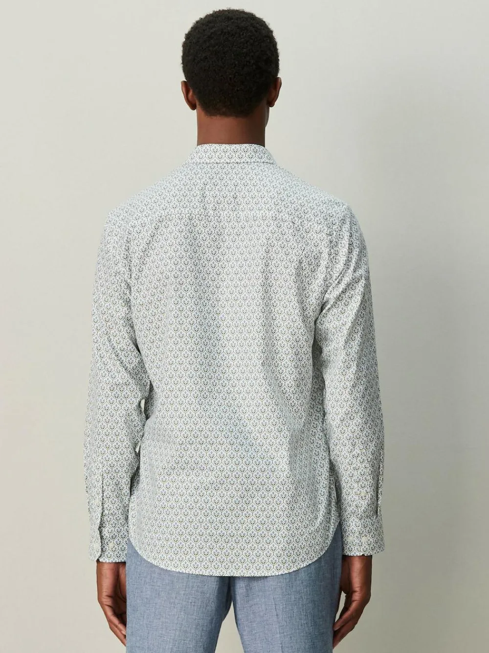 Add a sophisticated print to your workwear collection with this Floral Trellis Shirt. Featuring a subtle, detailed pattern in white and blue, this regular fit, long-sleeve shirt offers a polished look. It’s an excellent choice to brighten up your workwear or for smart-casual events. White & blue Button-through front Long sleeves with button cuffs Collared neckline Perfect for workwear Machine washable. 60% Cotton, 40% Recycled polyester.