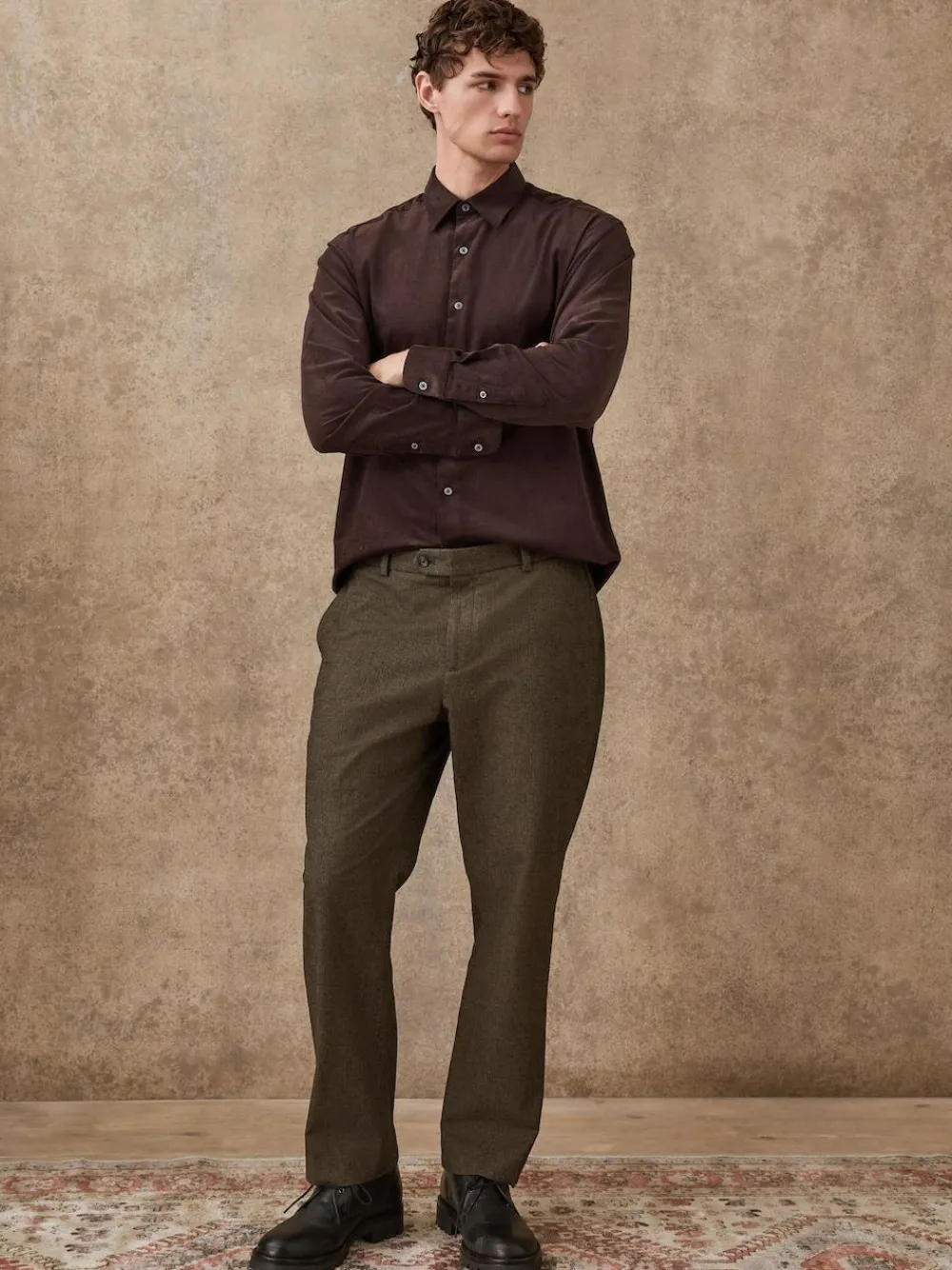 Next Regular Fit Smart Brushed Cotton Trousers^ Pants & Chinos