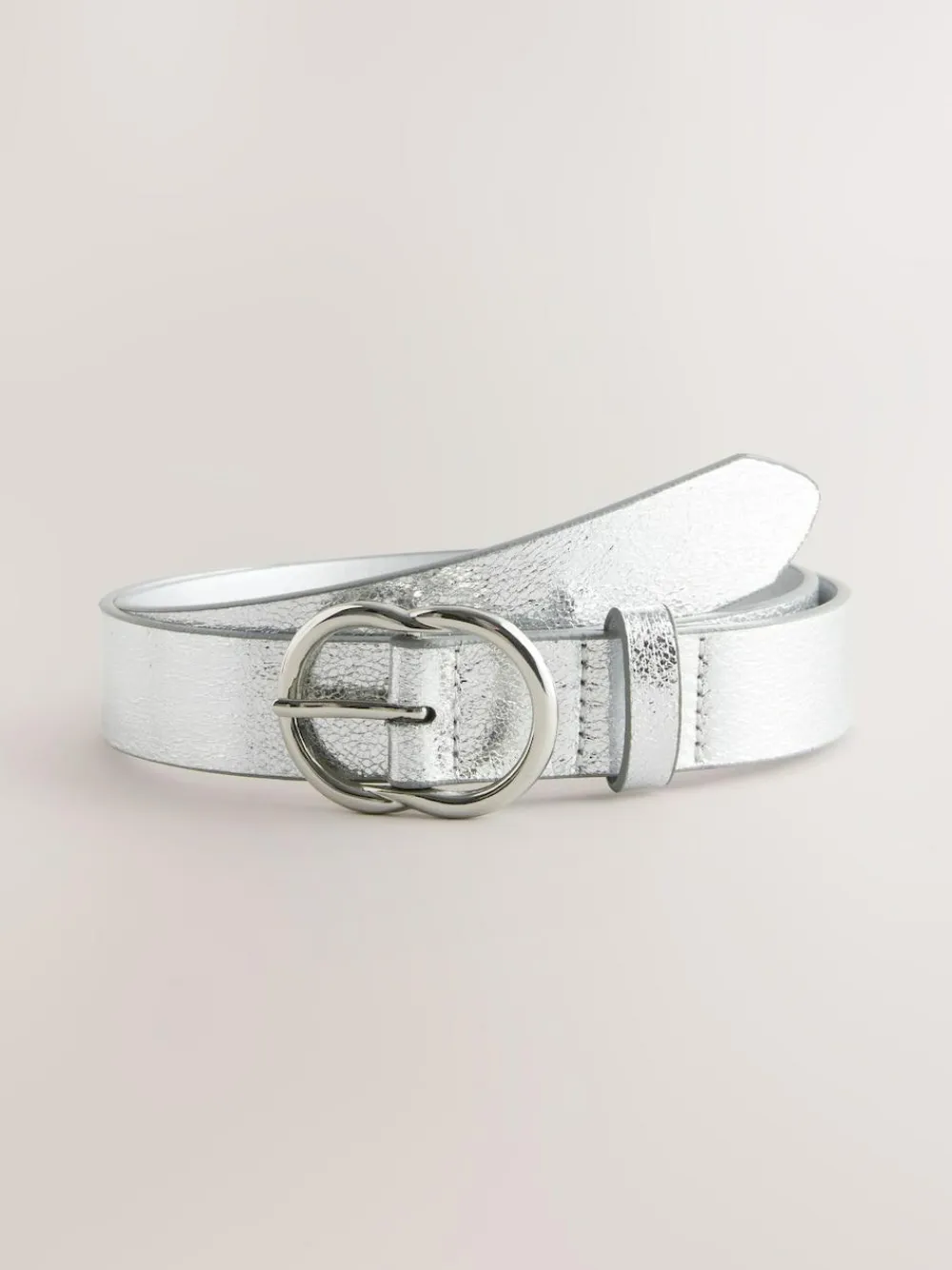 Make a statement this season with this eye-catching silver crackle belt. The striking crackle finish and metallic sheen create a fashionable look, perfect for adding a touch of edge to any outfit. Finished with a classic silver-toned buckle, it’s a versatile accessory that can be worn with jeans or cinched over a dress.Crackle finish Metallic sheen Silver-toned buckle PU material Adjustable fit 100% Polyurethane.