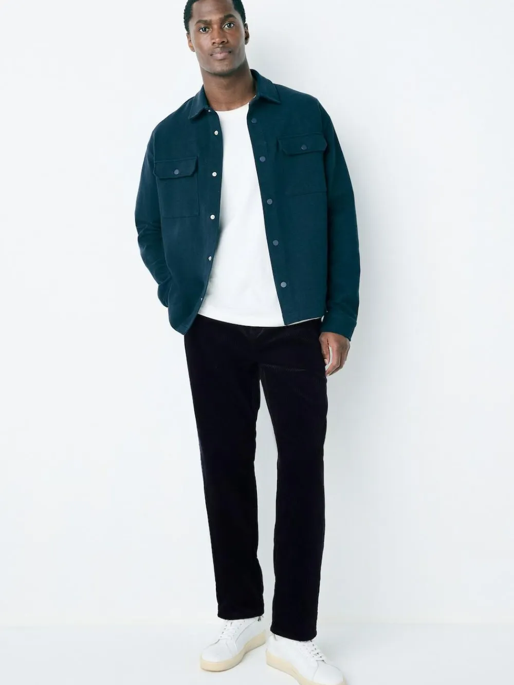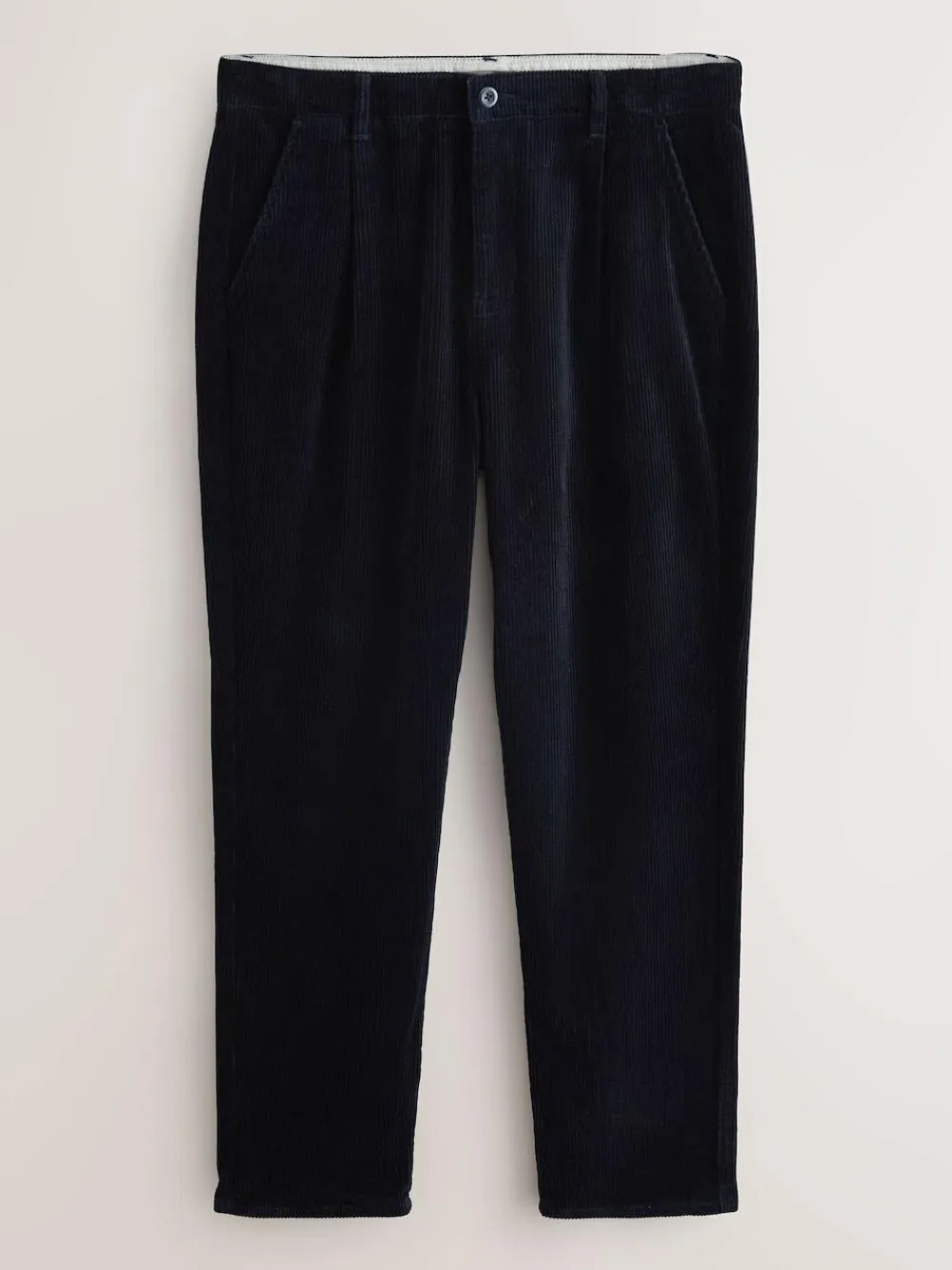 Refine your look with these classic navy corduroy trousers. Crafted from 100% cotton, the soft, textured fabric and modern fit offer superior comfort. The neat single pleat and tailored finish make them a versatile choice for a smart-casual wardrobe. 100% cotton corduroy Regular tapered fit Single-pleated waist Button and zip fastening Belt loops Side and back pockets Machine washable. 100% Cotton.