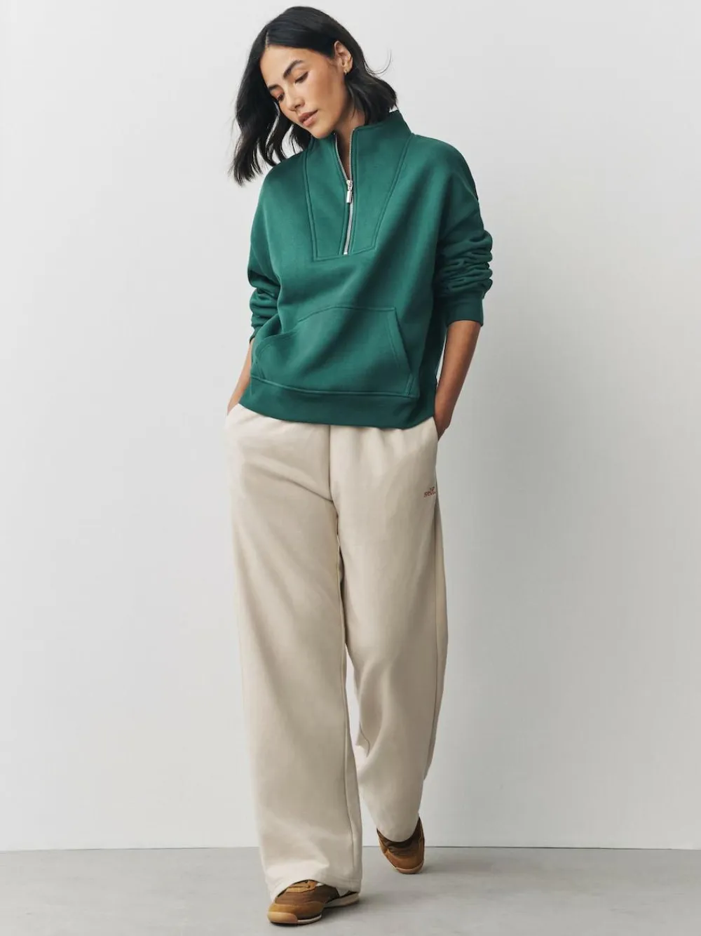 Next Relaxed Fit Heavyweight Cotton Rich Jersey Zip Neck Sweatshirt^Women Nightwear|Hoodies & Sweatshirts