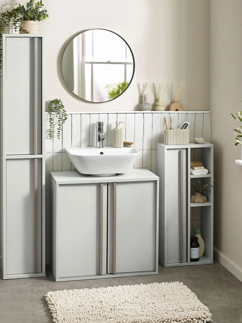 Our natural bathroom accessories collection has been inspired by Scandinavian design influences. In beautiful light oatmeal colour with textured finish. Matching items available. 88% Resin, 11% Plastic, 1% Silicone. This item has been tested to ensure it is bathroom suitable and protects against corrosion and distortion from steam.