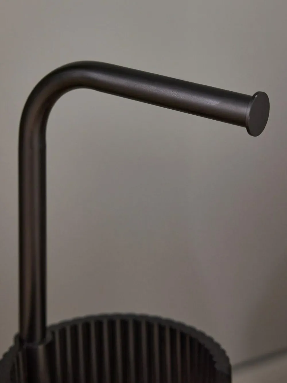 Our natural rib toilet roll holder and storage has a 3-roll storage capacity. With matching items available it is the perfect addition to any bathroom, inspired by Scandinavian design. Height 51.5cm Width 12.5cm Depth 12.5cm 95% Resin, 5% Metal. This item has been tested to ensure it is bathroom suitable and protects against corrosion and distortion from steam.