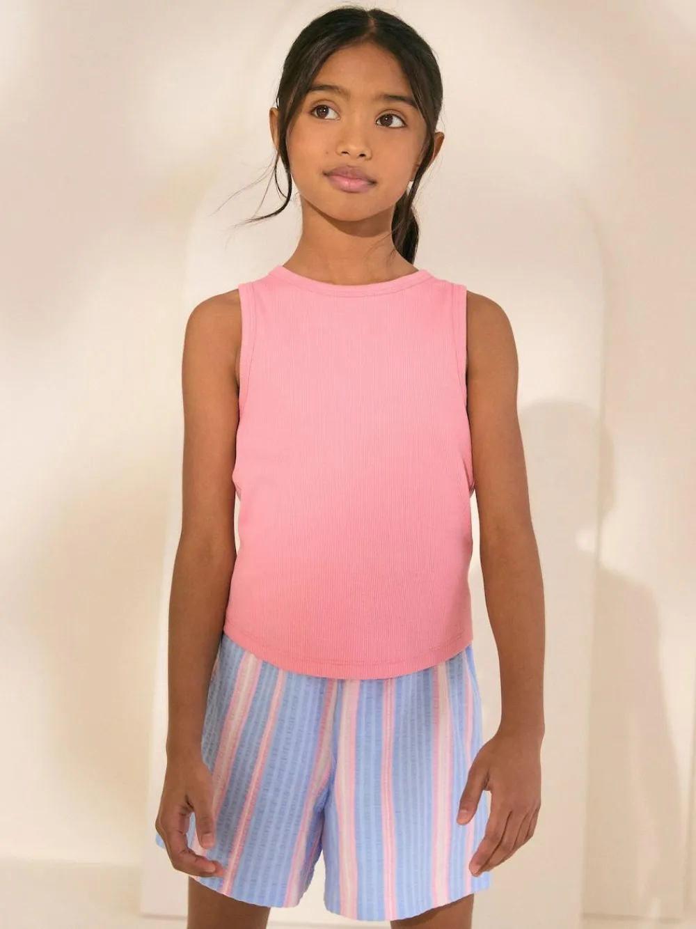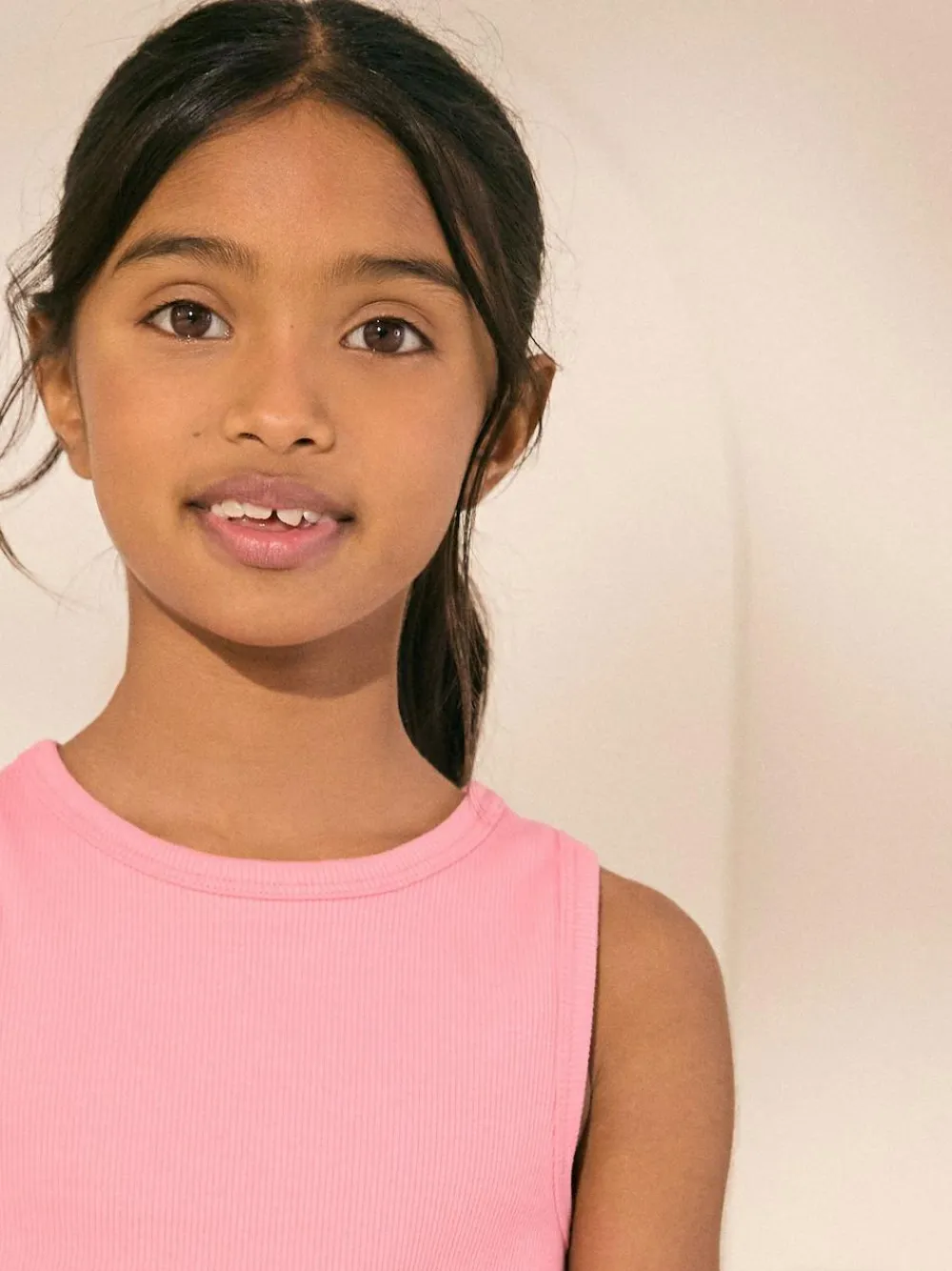 An everyday essential, this rib vest top will keep her comfy all day long. Made from soft cotton in a regular fit, it’s finely finished with a curved hem and subtle ribbed texture. Wear on its own in summer or as a base layer in winter. Cotton rich Ribbed texture Curve hem Regular fit Machine washable. 95% Cotton, 5% Elastane.