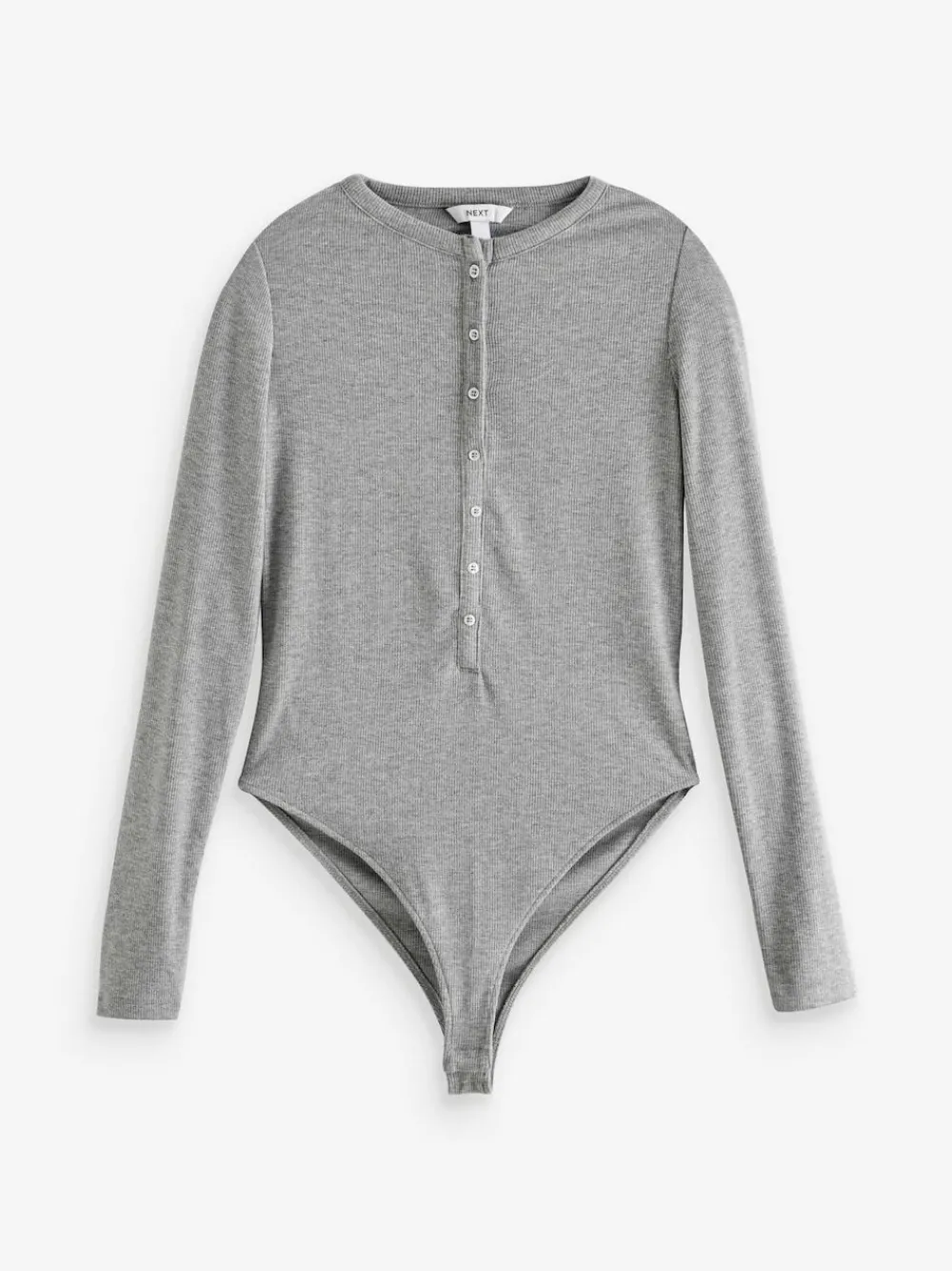 Next Ribbed Long Sleeve Henley Bodysuit Grey