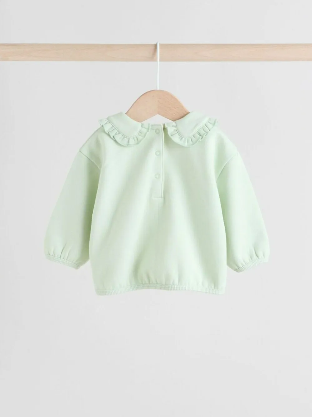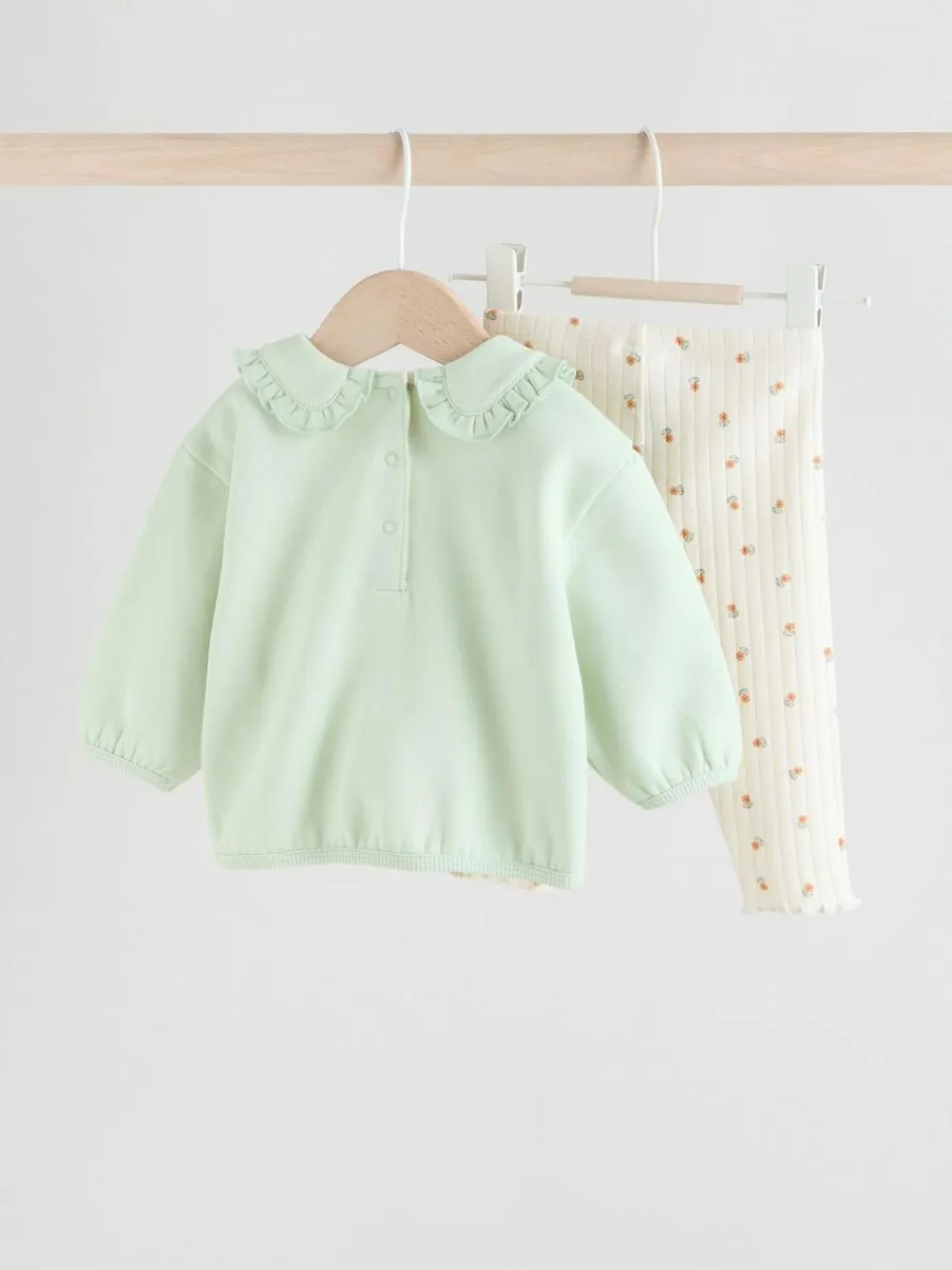Next Sage Green/ Cream Ditsy Baby Frill Collar Sweater and Leggings 2 Piece Set (0mths-2yrs)^ Sweatshirts & Hoodies|Sets & Coords