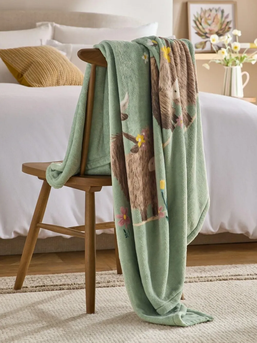 Next Sage Green Hamish The Highland Cow Spring Printed Fleece Throw^ Cushions & Throws