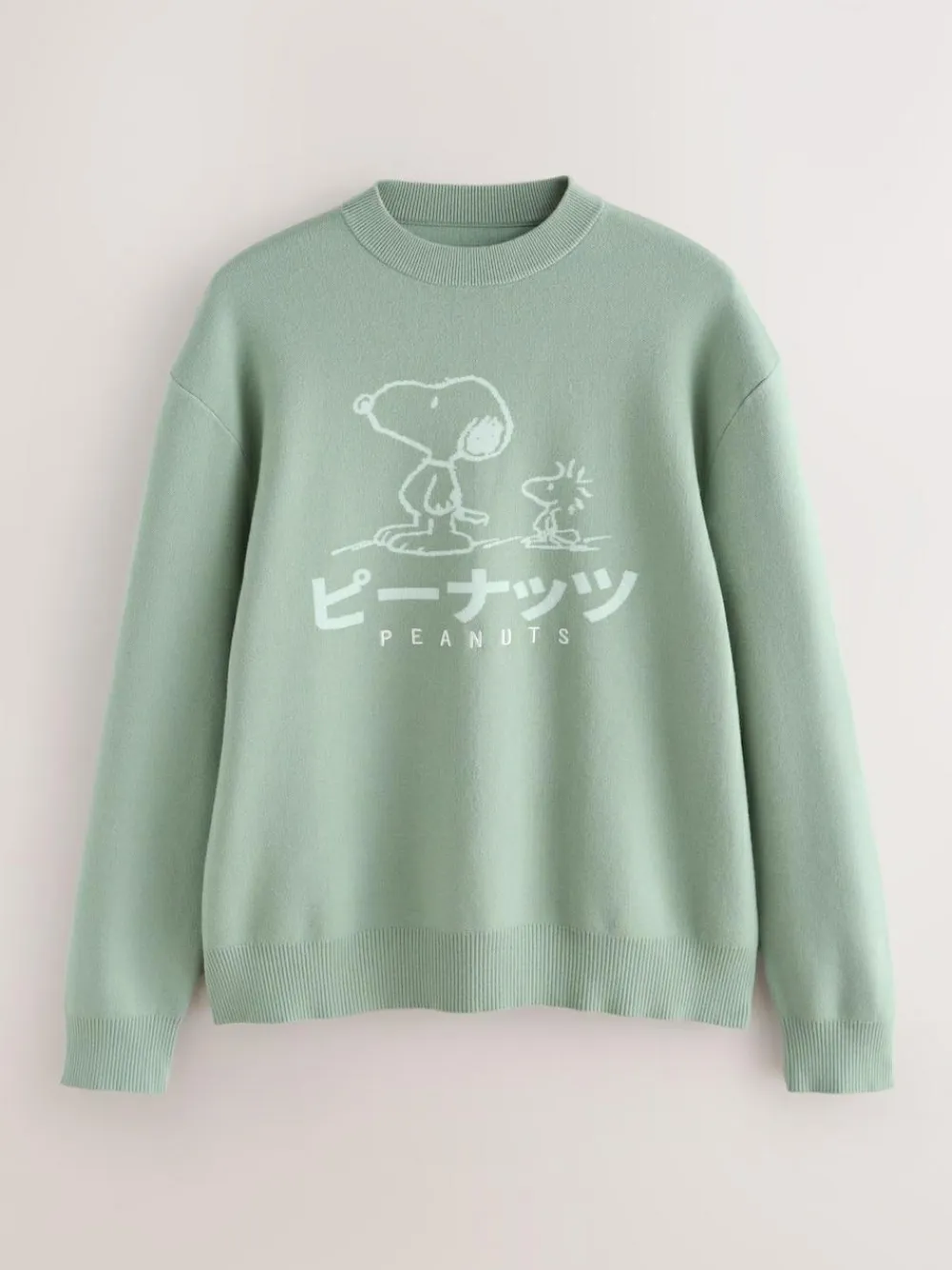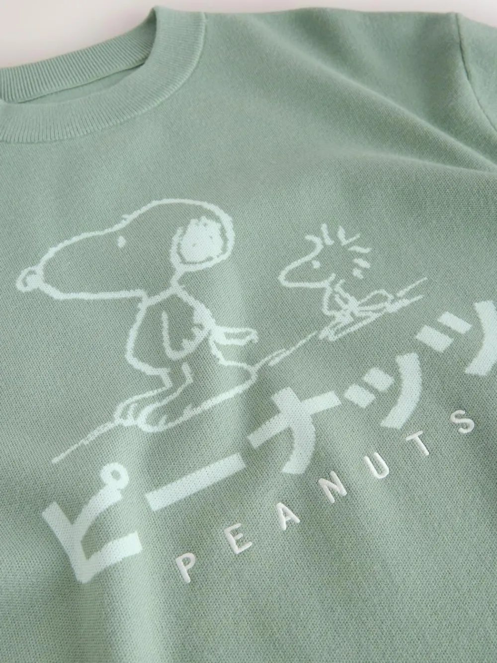 Next Sage Green Relaxed Fit Snoopy Graphic Print Crew Neck Jumper^ Knitwear|Knitwear