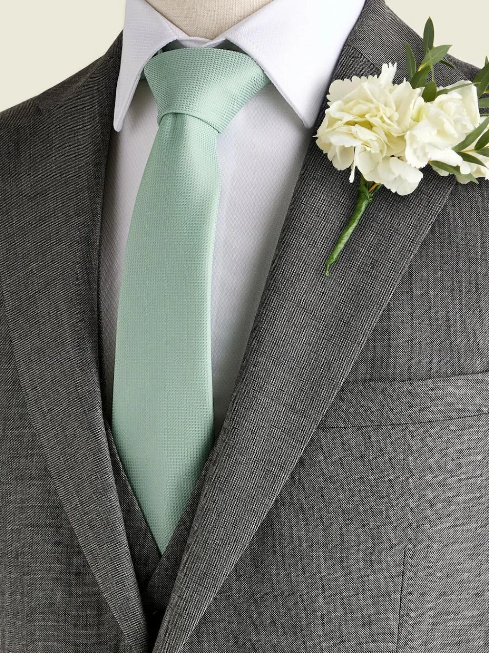Available in a slim width, this smart tie is the perfect finishing touch for your formal look, finished in a textured fabric and a sage green hue. Slim width Textured fabric Perfect for formal looks Width 7cm Machine washable. 100% Recycled polyester.