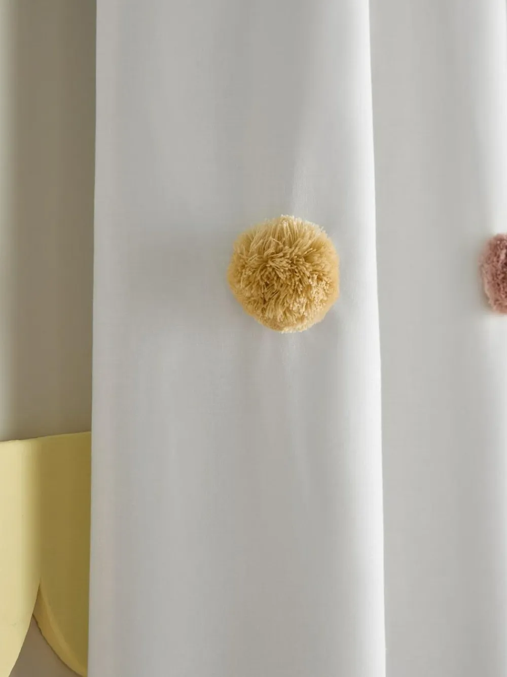 Draw these scandi inspired curtains and make it nighttime anytime. With their lightblocking qualities, they prevent unwanted external light, making them great for kids bedrooms, lightsleepers or if you fancy a longer lie-in on a lazy weekend morning. Black out lining Pom-pom design For top tips on measuring and finding the perfect pair of curtains for you, read our handy guide here Machine washable. 2 x Curtains Main 52% Recycled polyester, 48% Cotton. Lining 52% Recycled polyester with acrylic backing, 48% Cotton with acrylic backing. The sizes quoted are for each curtain panel.Suitable for curtain poles only – suggested sizes; Standard Width (117cm) – 120 to 165cmWide Width (168cm) – 165 to 250cm