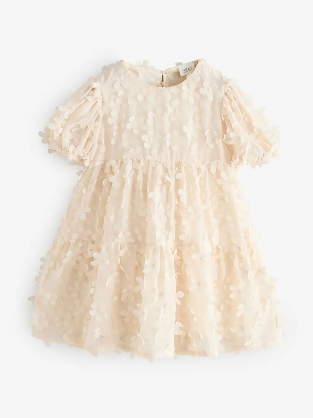 Next Short Sleeve 3D Flowers Dress (3mths-8yrs) Ecru White