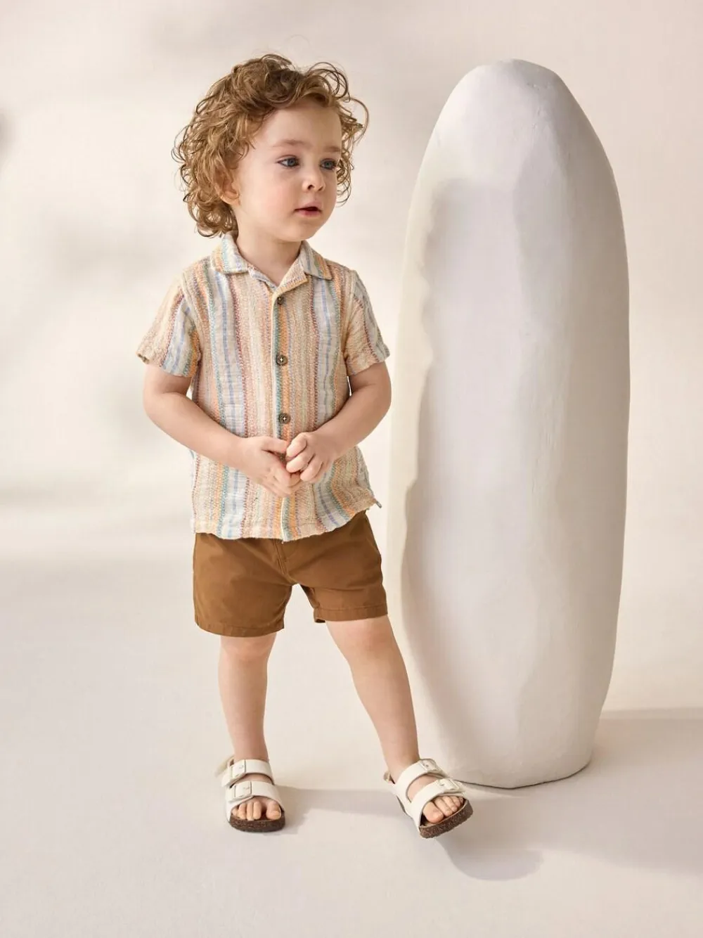 Ideal for your little dude’s summer selection, this short sleeve shirt is made from pure cotton, featuring a button-down fastening, a Cuban collar and a textured feel. 100% cotton Short sleeves Button-down fastening Cuban collar Textured finish 100% Cotton.